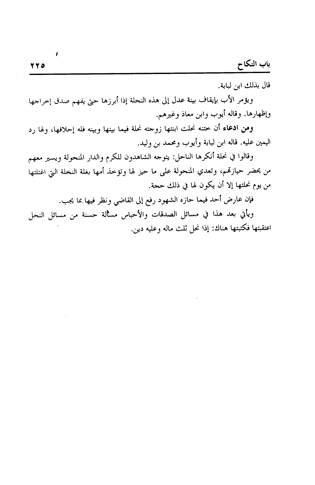 ويأتي بعد هذا في مسائل الصدقات والأحباس مسألة حسنة من مسائل النحل اعتقبتها فكتبتها هناك: إذا نحل ثلث ماله وعليه دين.