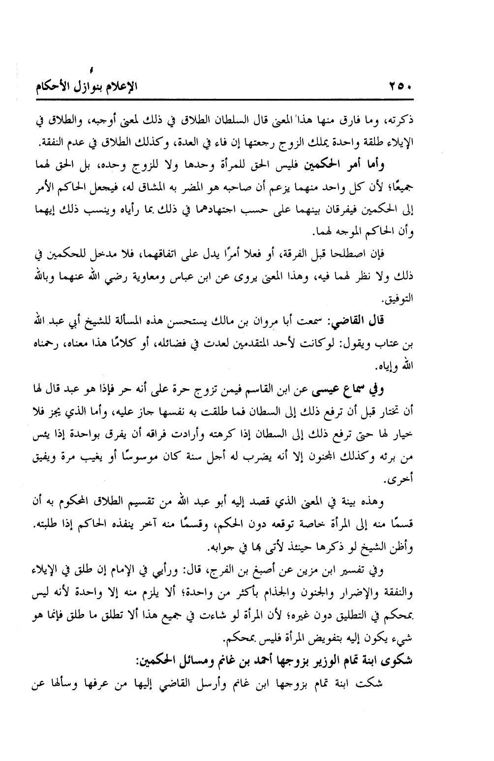 شكوى ابنة تمام الوزير بزوجها أحمد بن غانم ومسائل الحكمين: