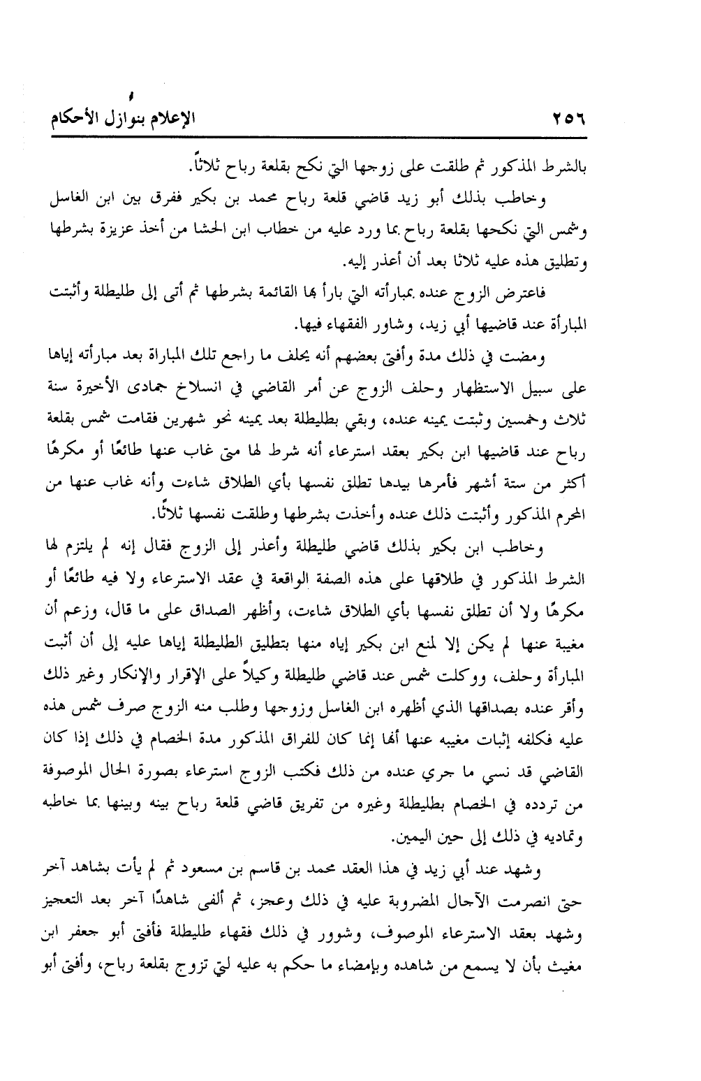 وخاطب بذلك أبو زيد قاضي قلعة رباح محمد بن بكير ففرق بين ابن الغاسل وشمس التي نكحها بقلعة رباح بما ورد عليه من خطاب ابن الحشا من أخذ عزيزة بشرطها وتطليق هذه عليه ثلاثًا بعد أن أعذر إليه.