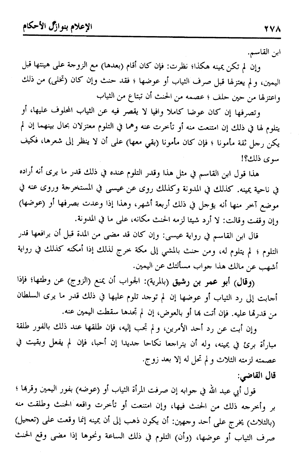 قول أبي عبد الله في جوابه إن صرفت المرأة الثياب أو (عوضه) بفور اليمين وقربها؛ بر وأخرجه ذلك من الحنث فيها، وإن امتنعت أو تأخرت واقعه الحنث وطلقت منه (بالثلاث) يخرج على أحد وجهين: أن يكون ذهب إلى أن يمينه إنما وقعت على (تعجيل) صرف الثياب أو عوضها، (وأن) التلوم في ذلك الساعة ونحوها إذا مضى وقع الحنث