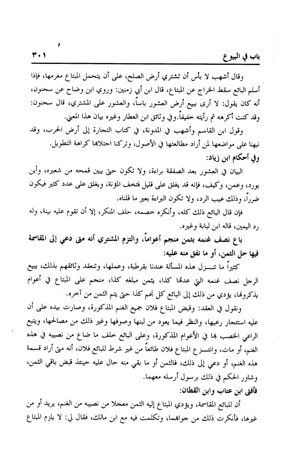 كثيرًا ما تنزل هذه المسألة عندنا بقرطبة، وعملها، وتنعقد وثائقهم بذلك، يبيع الرجل نصف غنمه التي عدتها كذا، بثمن مبلغه كذا، منجم على المبتاع في أعوام يذكرونها، يؤدي من ذلك إلى البائع كل نجم كذا حتى يتم الثمن من آخره.