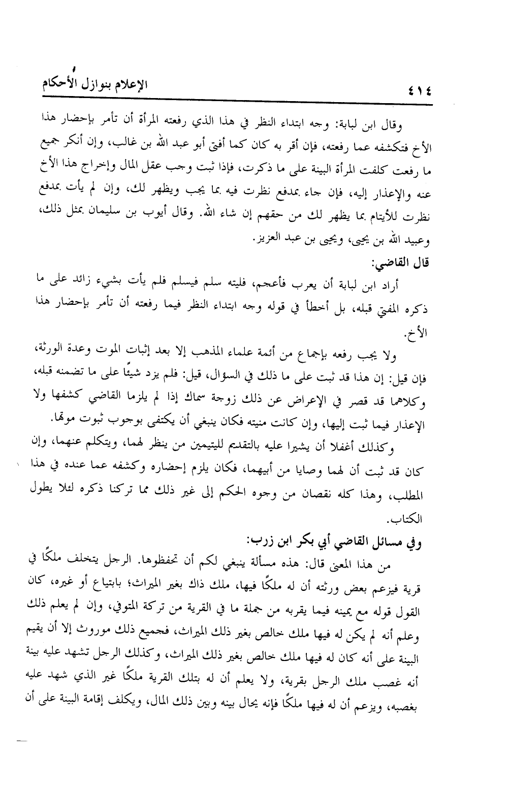 وفي مسائل القاضي أبي بكر ابن زرب: