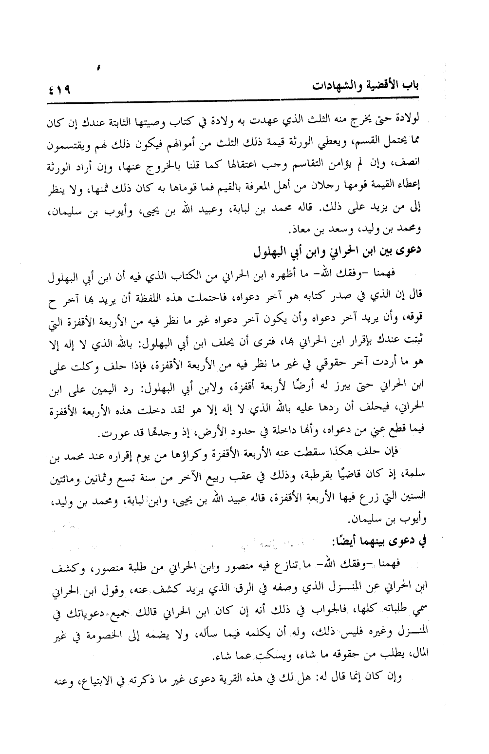 دعوى بين ابن الحراني وابن أبي البهلول: