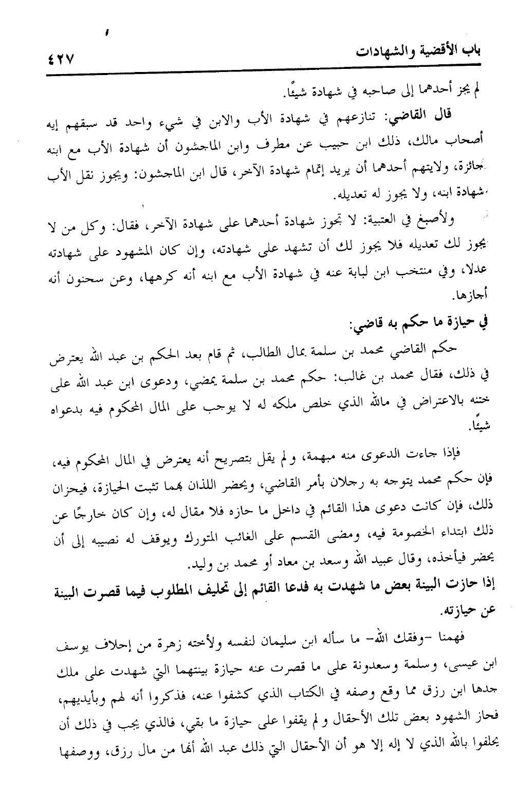 فهمنا – وفقك الله – ما سأله ابن سليمان لنفسه ولأخته زهرة من إحلاف يوسف ابن عيسى، وسلمه وسعدونة على ما قصرت عنه حيازة بينتهما التي شهدت على ملك جدها ابن رزق مما وقع وصفه في الكتاب الذي كشفوا عنه، فذكروا أنه لخم وبأيديهم، فحاز الشهود بعض تلك الأحقال ولم يقفوا على حيازة ما بقي، فالذي يجب في ذلك أن يحلفوا بالله الذي لا اله إلا هو أن الأحقال التي ذلك عبد الله أنها من مال رزق، ووصفها