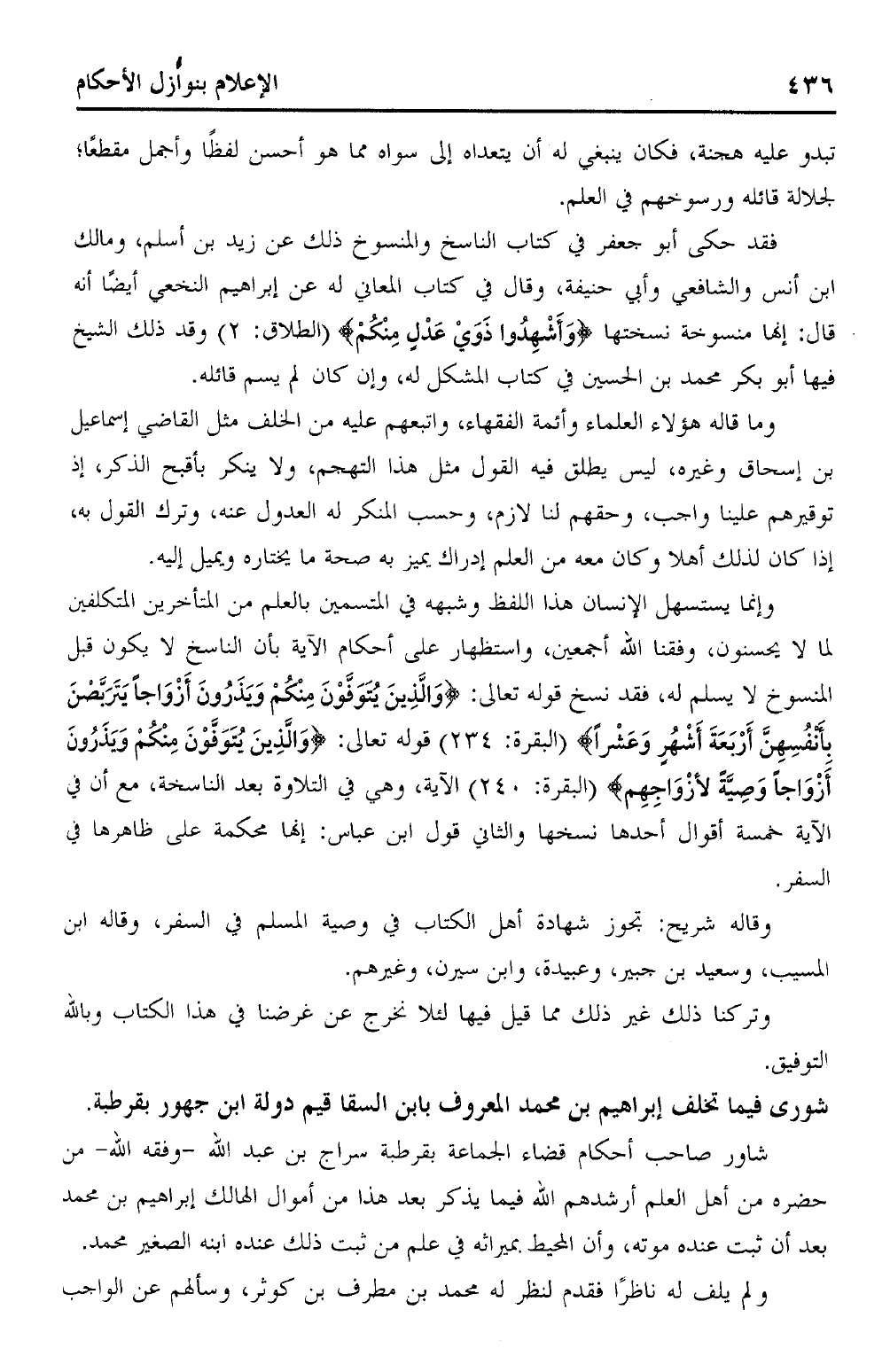 شاور صاحب أحكام قضاء الجماعة بقرطبة سراج بن عبد الله – وفقه الله – من حضرة من أهل العلم أرشدهم الله فيما يذكر بعد هذا من أموال الهالك إبراهيم بن محمد بعد أن ثبت عنده موته، وأن المحيط بميراثه في علم من ثبت ذلك عنده ابنه الصغير محمد.