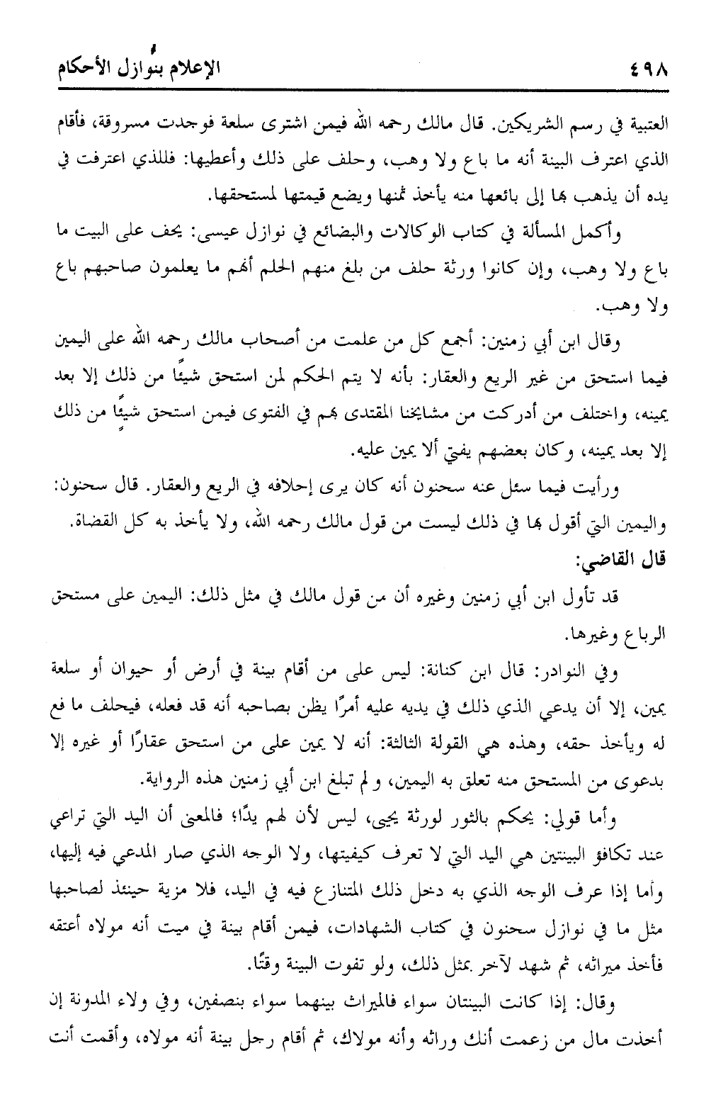 وفي النوادر: قال ابن كنانة: ليس على من أقام بينة في أرض أو حيوان أو سلعة يمين، إلا أن يدعي الذي ذلك في يديه عليه أمرًا يظن بصاحبه أنه قد فعله، فيحلف ما فع له ويأخذ حقه، وهذه هي القولة الثالثة: أنه لا يمين على من استحق عقارًا أو غيره إلا بدعوى من المستحق منه تعلق به اليمين، ولم تبلغ ابن أبي زمنين هذه الرواية.