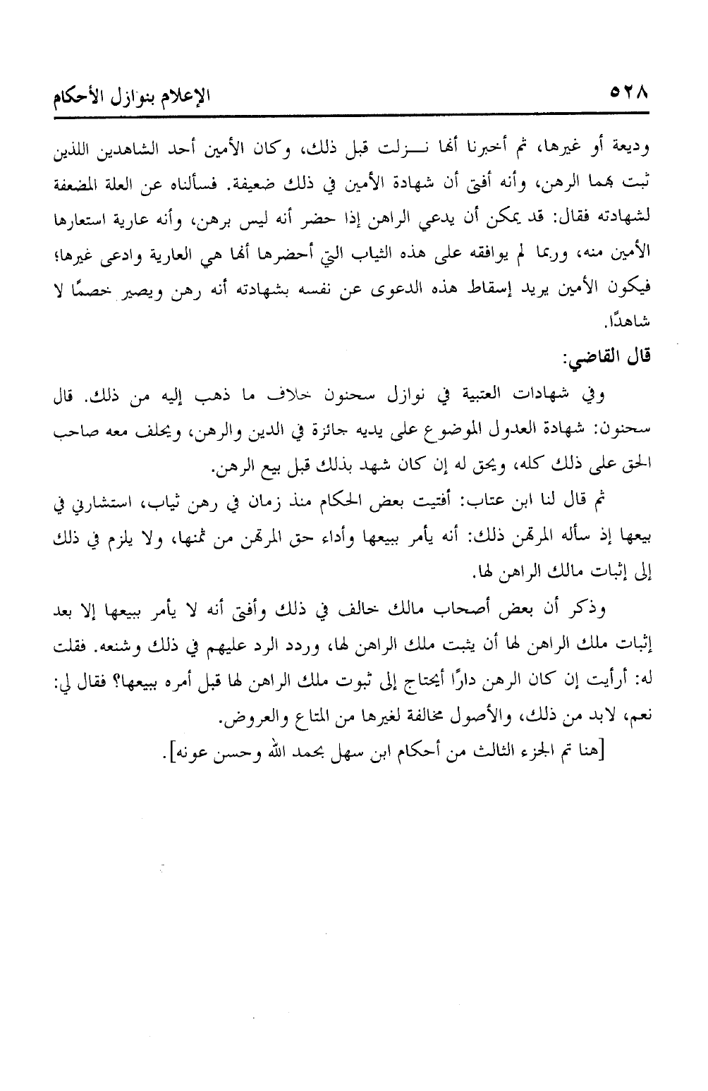 [هنا تم الجزء الثالث من أحكام ابن سهل بحمد الله وحسن عونه]