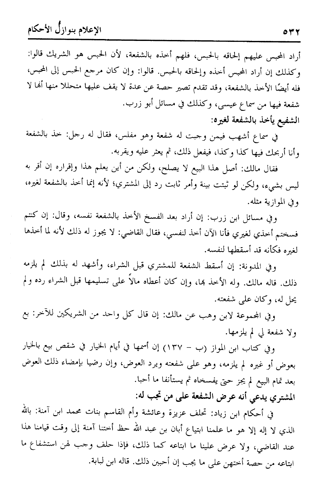 أراد المحبس عليهم إلحاقهم بالحبس، فلهم أخذه بالشفعة، لأن الحبس هو اشريك قالوا: وكذلك أن أراد المحبس أخذه وإلحاقه بالحبس. قالوا: وإن كان مرجع الحبس إلى المحبس، فله أيضًا الأخذ بالشفعة، وقد تقدم تصير حصة عن عدة لا يقف عليها متحللا منها أنها لا شفعة فيها من سماع عيسى، وكذلك في مسائل أبو زرب.