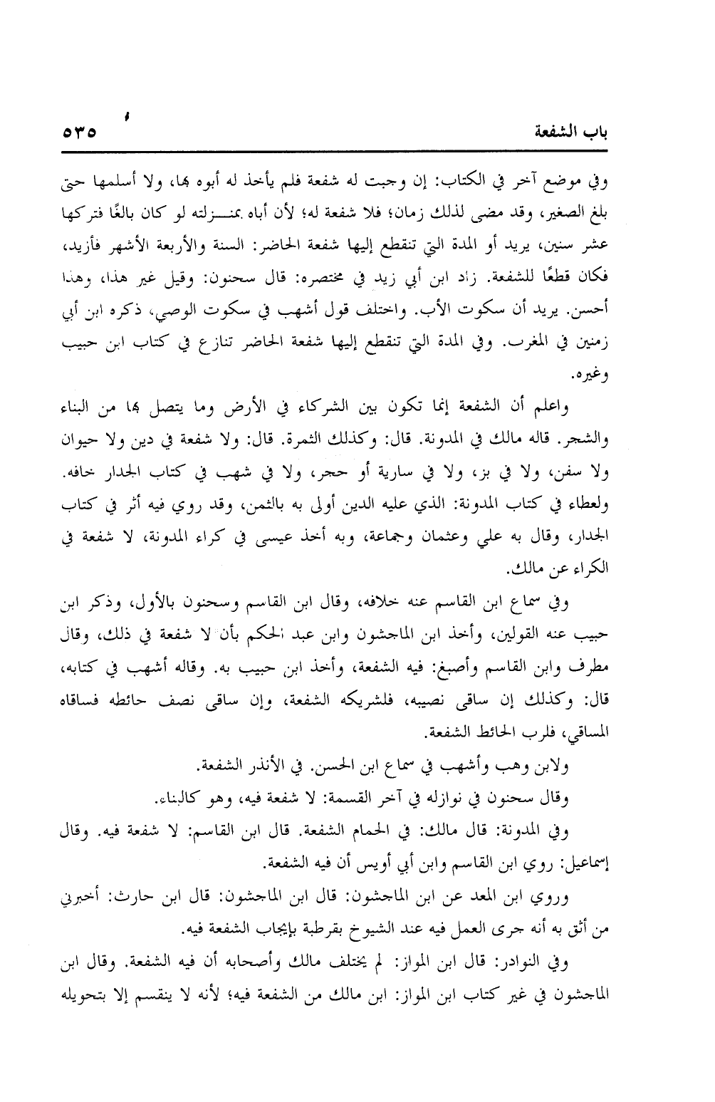 وروي ابن المعد عن ابن الماجشون: قال ابن الماجشون: قال ابن حارث: أخبرني من أثق به أنه جرى العمل فيه عند الشيوخ بقرطبة بإيجاب الشفعة فيه.
