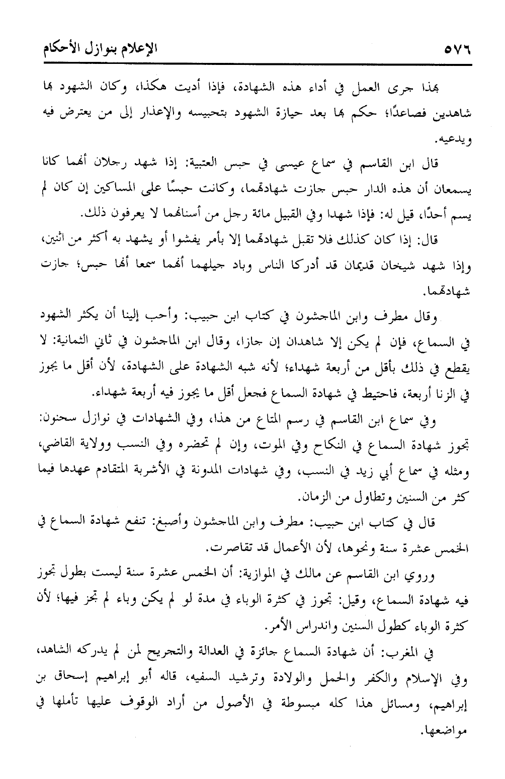 في المغرب: أن شهادة السماع جائزة في العدالة والتجريح لمن لم يدركه الشاهد، وفي الإسلام والكفر والحمل والولادة وترشيد السفيه، قال أبو إبراهيم إسحاق بن إبراهيم، ومسائل هذا كله مبسوطة في الأصول من أراد الوقوف عليها تأملها في مواضعها.