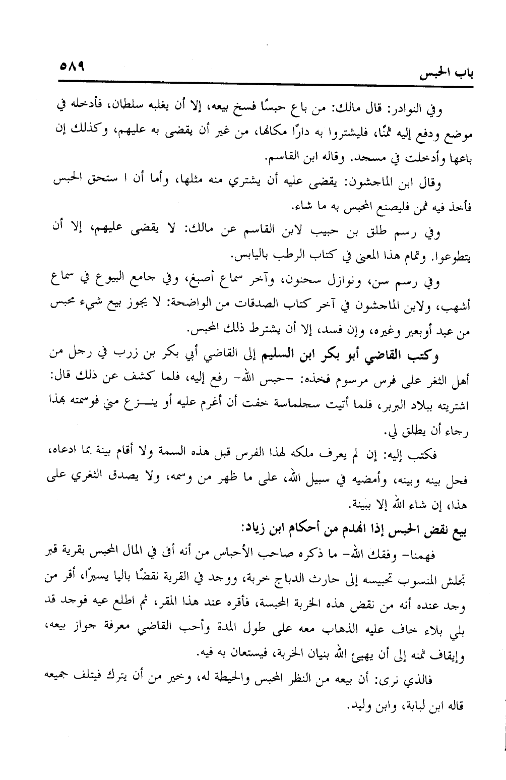 بيع نقض الحبس إذا انهدم من أحكام ابن زياد:
