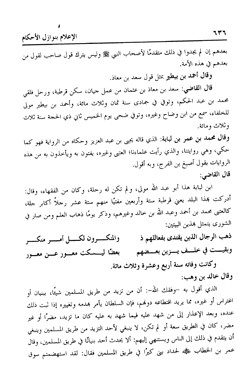 ابن لبابة هذا أبو عبد الله مولى، ولم تكن له رحلة، وكان من الفقهاء، وقال: أدركت بهذا البلد يعني قرطبة ستة وأربعين مفتيًا منهم ستة عشر رجلاً أكابر جلة، كالعتبي محمد بن أحمد وعبد الله بن خالد وغيرهم، وذكر يومًا ذهاب العلم ومن صار في الشورى يتمثل بهذين البيتين: