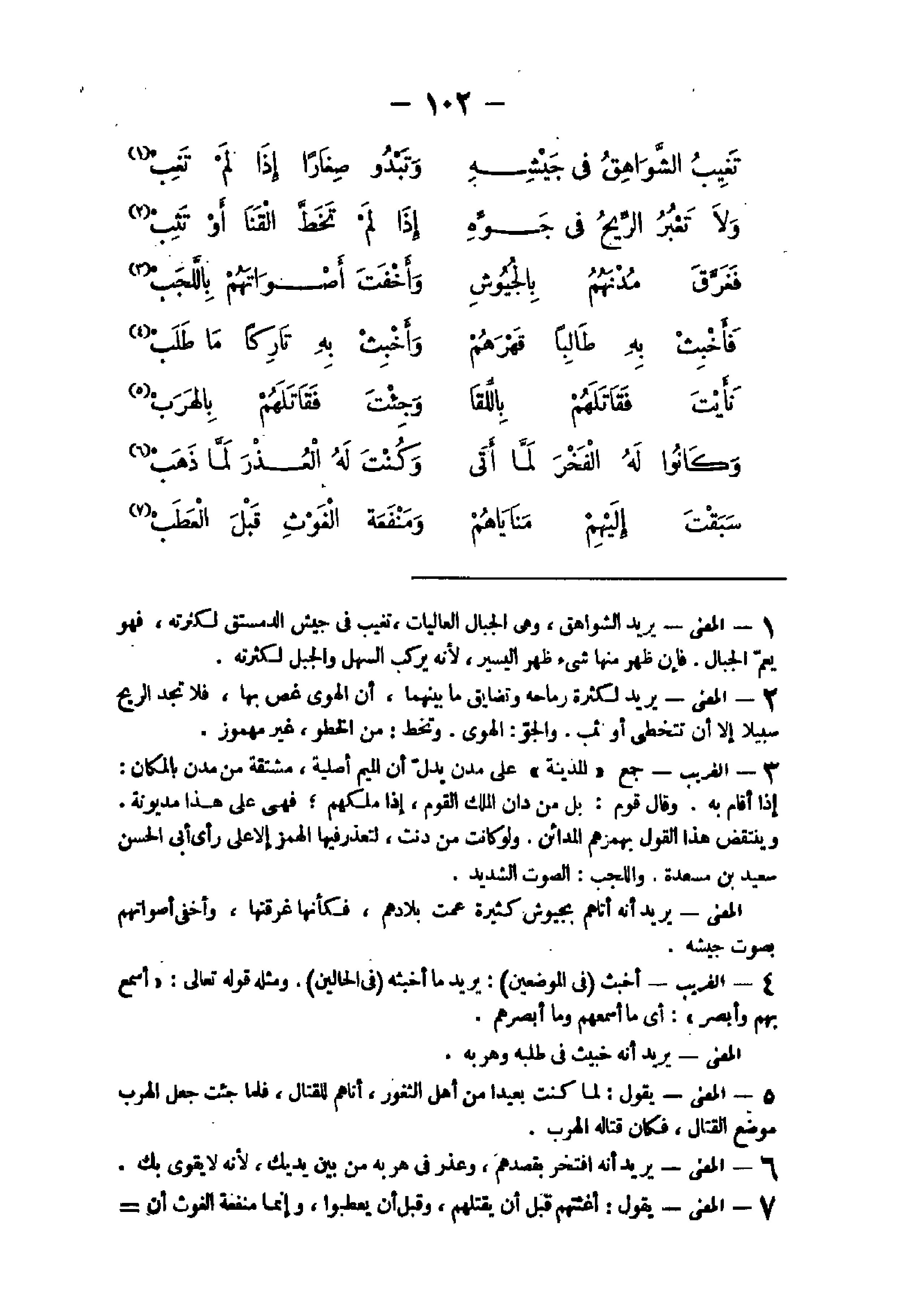 - الْمَعْنى يُرِيد الشواهق وهى الْجبَال العاليات تغيب فى جَيش الدمستق لكثرته فَهُوَ يعم الْجبَال فَإِن ظهر مِنْهَا شئ ظهر الْيَسِير لِأَنَّهُ يركب السهْم والجبل لكثرته