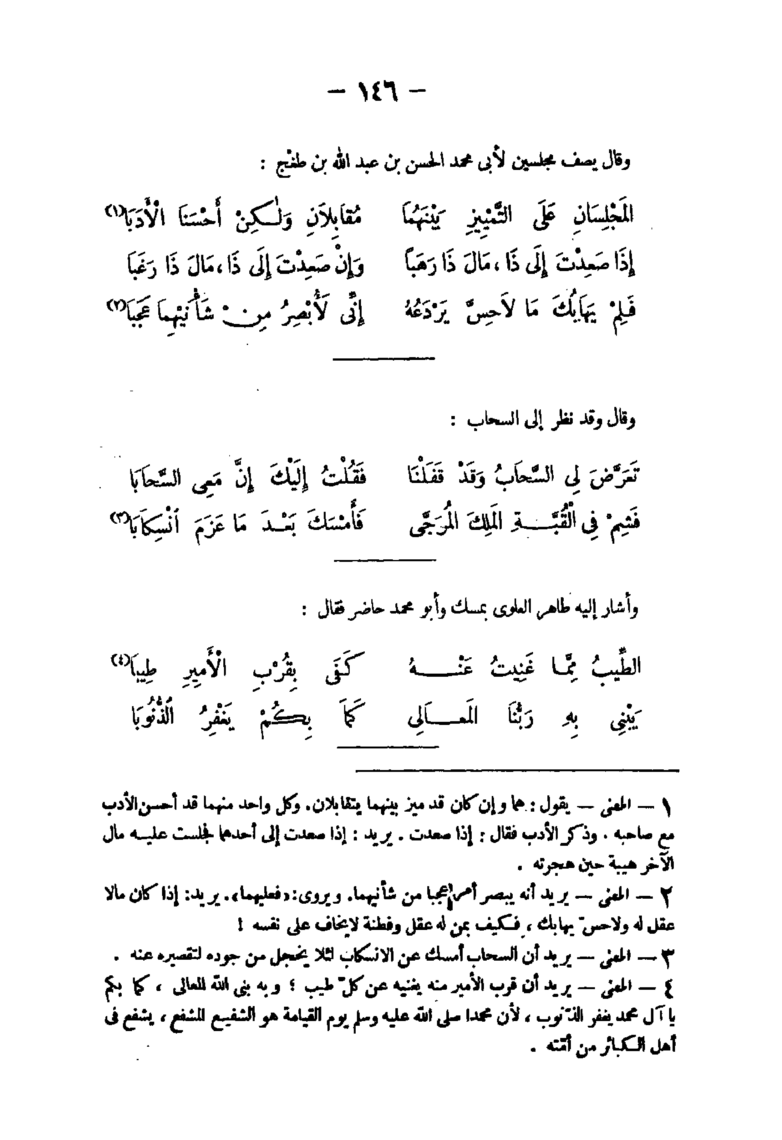 - 1 - الْمَعْنى يُرِيد أَن قرب الْأَمِير مِنْهُ يُغْنِيه عَن كل طيب وَبِه بنى الله المعالى كَمَا بكم يَا آل مُحَمَّد يغْفر الذُّنُوب لِأَن مُحَمَّدًا