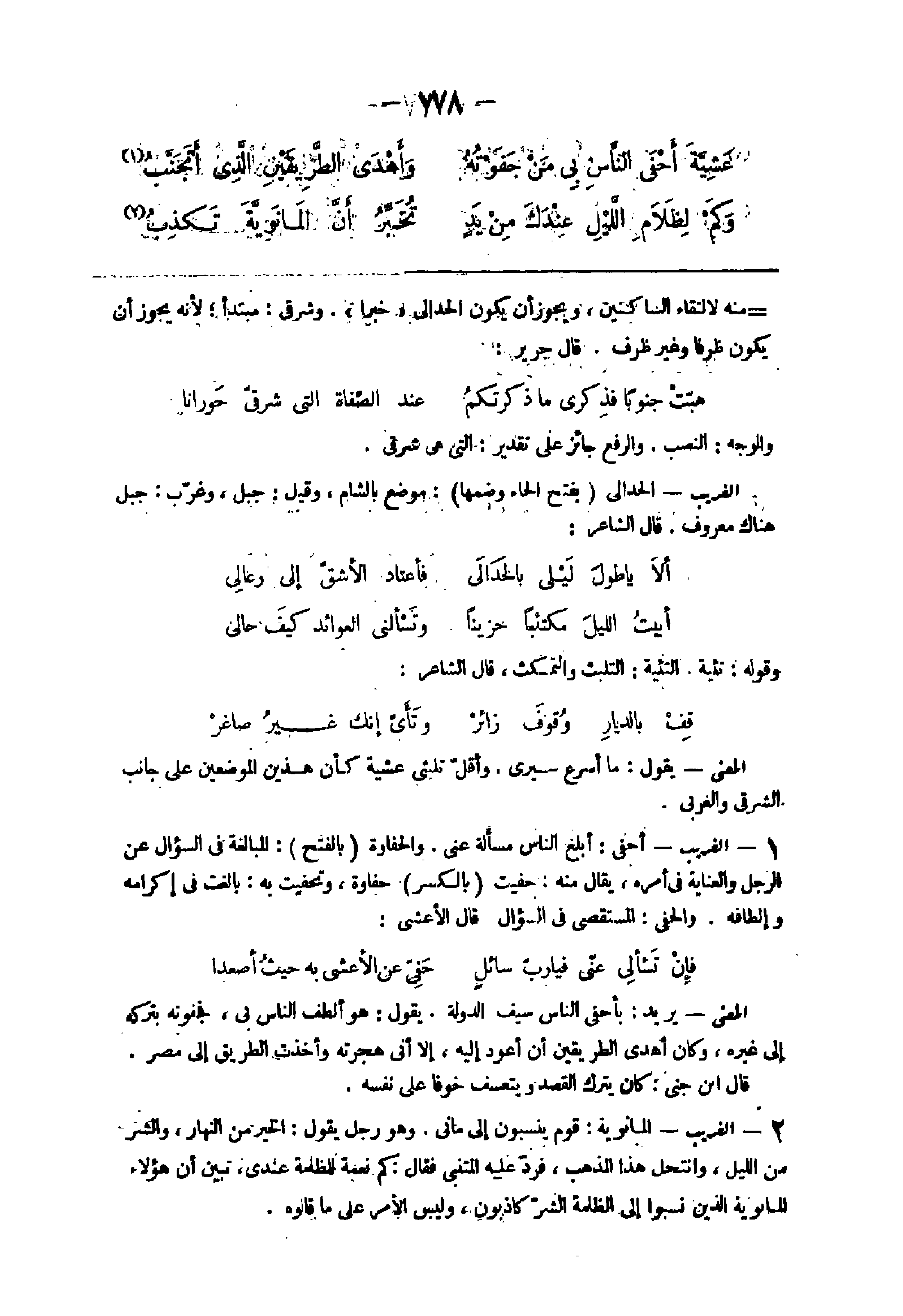 الْمَعْنى يُرِيد بأحفى النَّاس سيف الدولة يَقُول هُوَ ألطف النَّاس بى فجفوته بِتَرْكِهِ إِلَى غَيره وَكَانَ أهْدى الطَّرِيقَيْنِ أَن أَعُود إِلَيْهِ إِلَّا أَنى هجرته وَأخذت الطَّرِيق إِلَى مصر قَالَ ابْن جنى كَانَ يتْرك الْقَصْد ويتعسف خوفًا على نَفسه
