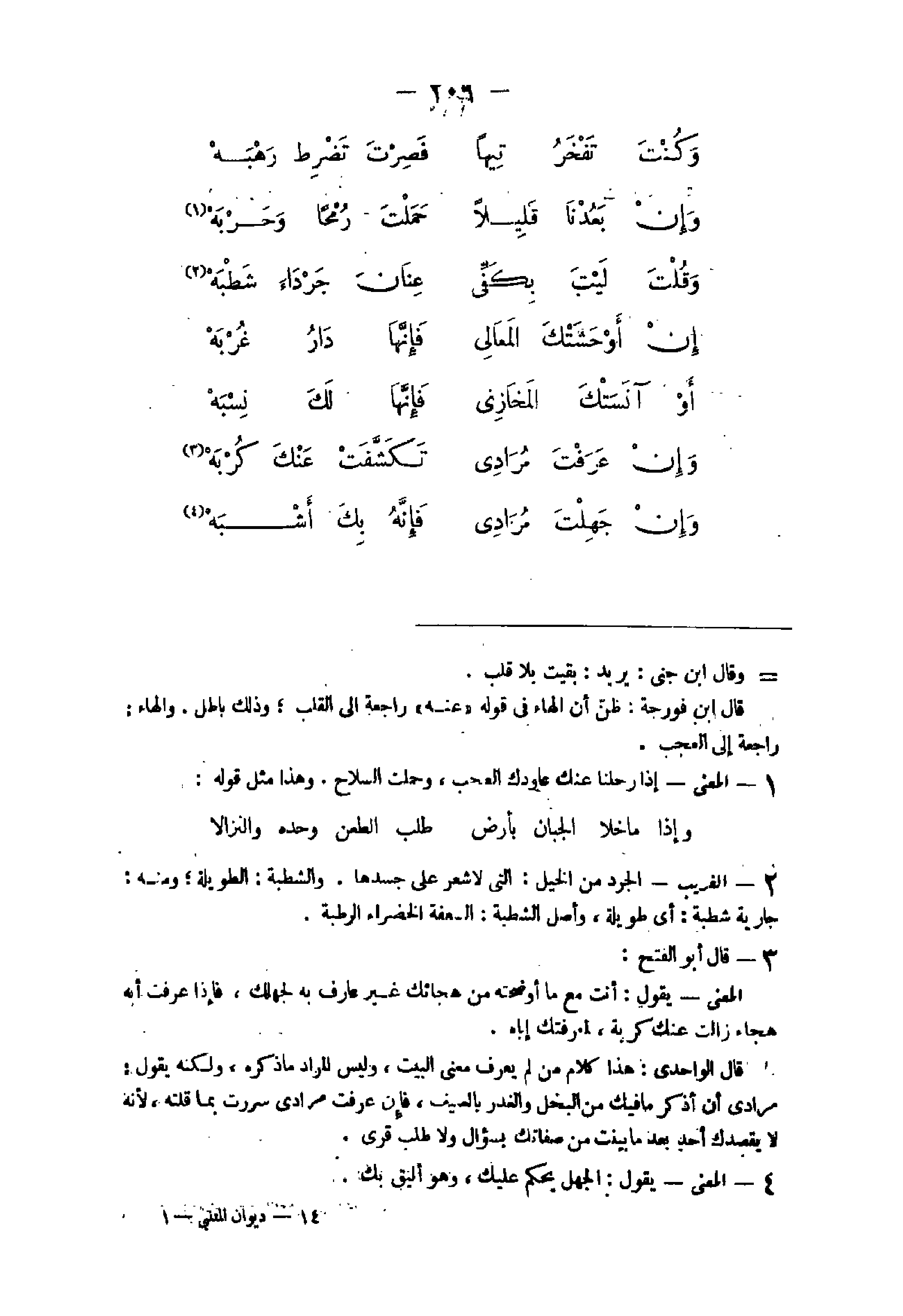 35 - قَالَ أَبُو الْفَتْح الْمَعْنى يَقُول أَنْت مَعَ مَا أوضحته من هجائك غير عَارِف بِهِ لجهلك فَإِذا عرفت أَنه هجاء زَالَت عَنْك كربَة لمعرفتك إِيَّاه قَالَ الواحدى هَذَا كَلَام من لم يعرف معنى الْبَيْت وَلَيْسَ المُرَاد مَا ذكره وَلكنه يَقُول مرادى أَن أذكر مَا فِيك من الْبُخْل والغدر بالضيف فَإِن عرفت مرادى سررت بِمَا قلته لِأَنَّهُ لَا يقصدك أحد بعد مَا بيّنت من صفاتك بسؤال وَلَا طلب قرى