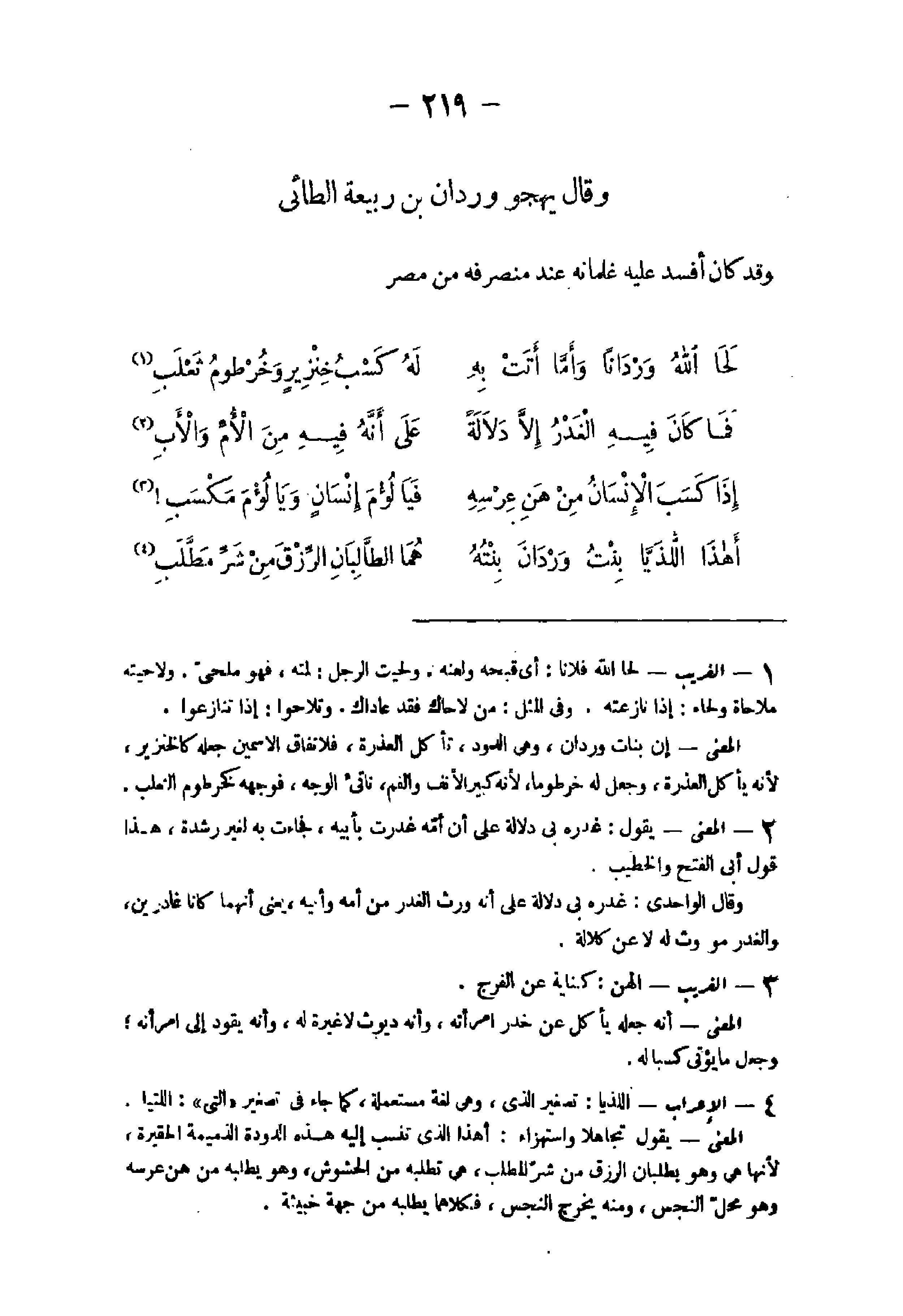 4 - الْإِعْرَاب اللذيا تَصْغِير الذى وهى لُغَة مستعملة كَمَا جَاءَ فى تَصْغِير الَّتِى للتيا الْمَعْنى يَقُول تجاهلا واستهزاء أَهَذا الذى تنْسب إِلَيْهِ هَذِه الدودة الذميمة الحقيرة لِأَنَّهَا هى وَهُوَ يطلبان الرزق من شَرّ الْمطلب هى تطلبه من الحشوش وَهُوَ يَطْلُبهُ من هن عرسه وَهُوَ مَحل النَّجس وَمِنْه يخرج النَّجس فكلاهما يَطْلُبهُ من جِهَة خبيثة