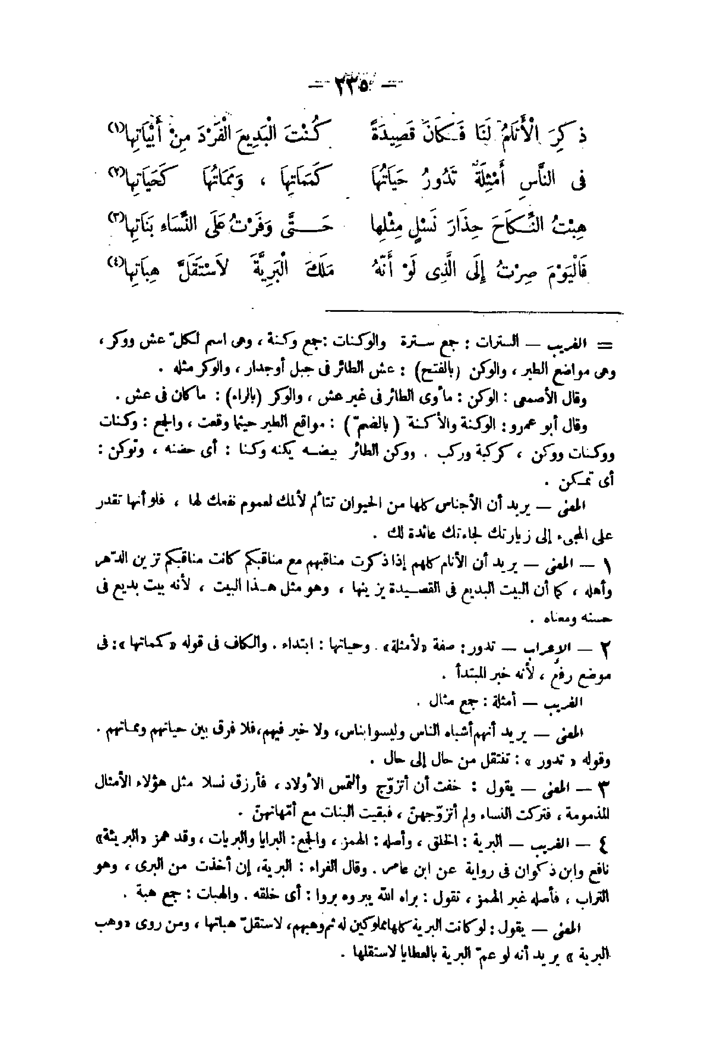 37 - الْإِعْرَاب تَدور صفة لأمثلة وحياتها ابْتِدَاء وَالْكَاف فى قَوْله كمماتها فى مَوضِع رفع لِأَنَّهُ خبر الْمُبْتَدَأ الْغَرِيب أَمْثِلَة جمع مِثَال الْمَعْنى يُرِيد أَنهم أشبه النَّاس وَلَيْسوا بناس وَلَا خير فيهم فَلَا فرق بَين حياتهم ومماتهم وَقَوله تَدور تنْتَقل من حَال إِلَى حَال