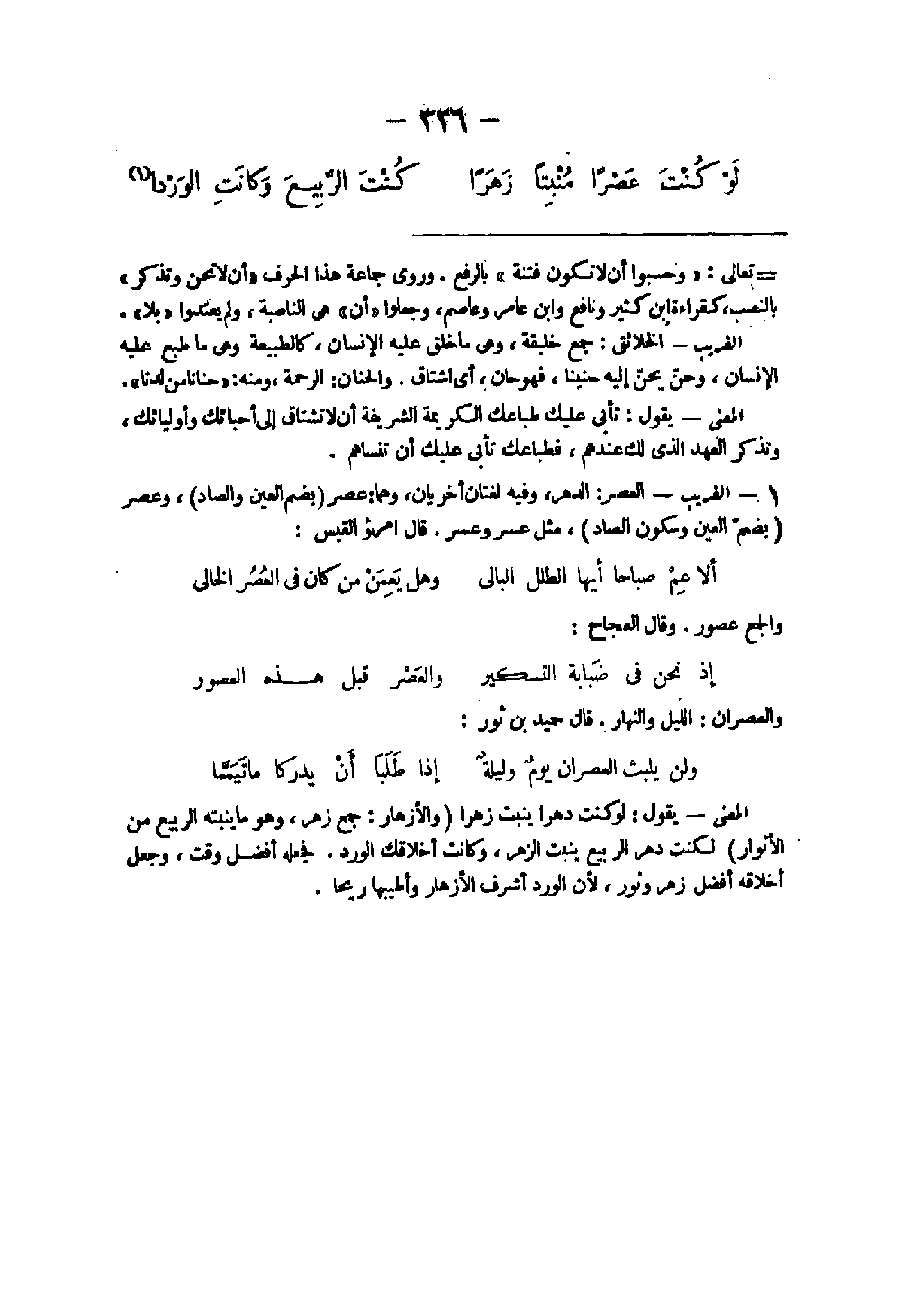 الْمَعْنى يَقُول لَو كنت دهرا ينْبت زهرا والأزهار جمع زهر وَهُوَ مَا ينبته الرّبيع من الْأَنْوَار لَكُنْت دهر الرّبيع ينْبت الزهر وَكَانَت أخلاقك الْورْد فَجعله أفضل وَقت وَجعل أخلاقه أفضل زهر وَنور لِأَن الْورْد أشرف الأزهار وأطيبها ريحًا