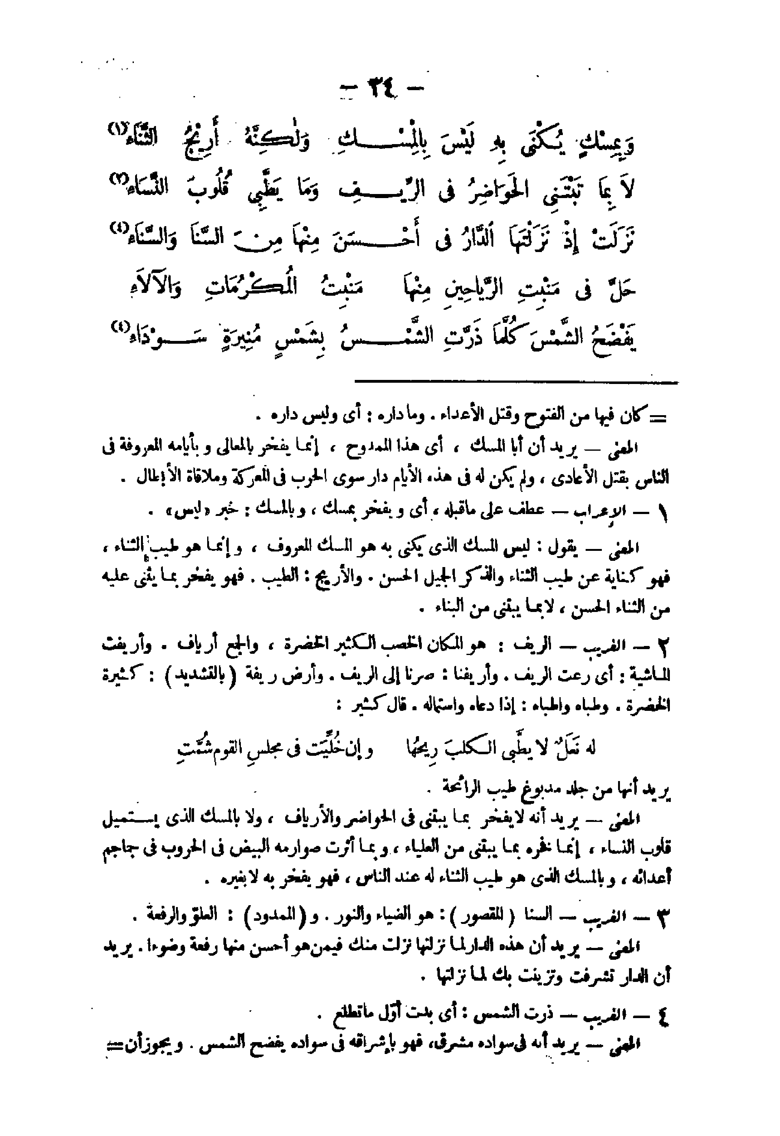 13 - الْغَرِيب السنا الْمَقْصُور هُوَ الضياء والنور والممدود الْعُلُوّ والرفعة الْمَعْنى يُرِيد أَن هَذِه الدَّار لما نزلتها نزلت مِنْك فِيمَن هُوَ أحسن مِنْهَا رفْعَة وضُوءًا يُرِيد أَن الدَّار تشرفت وتزينت بك لما نزلتها