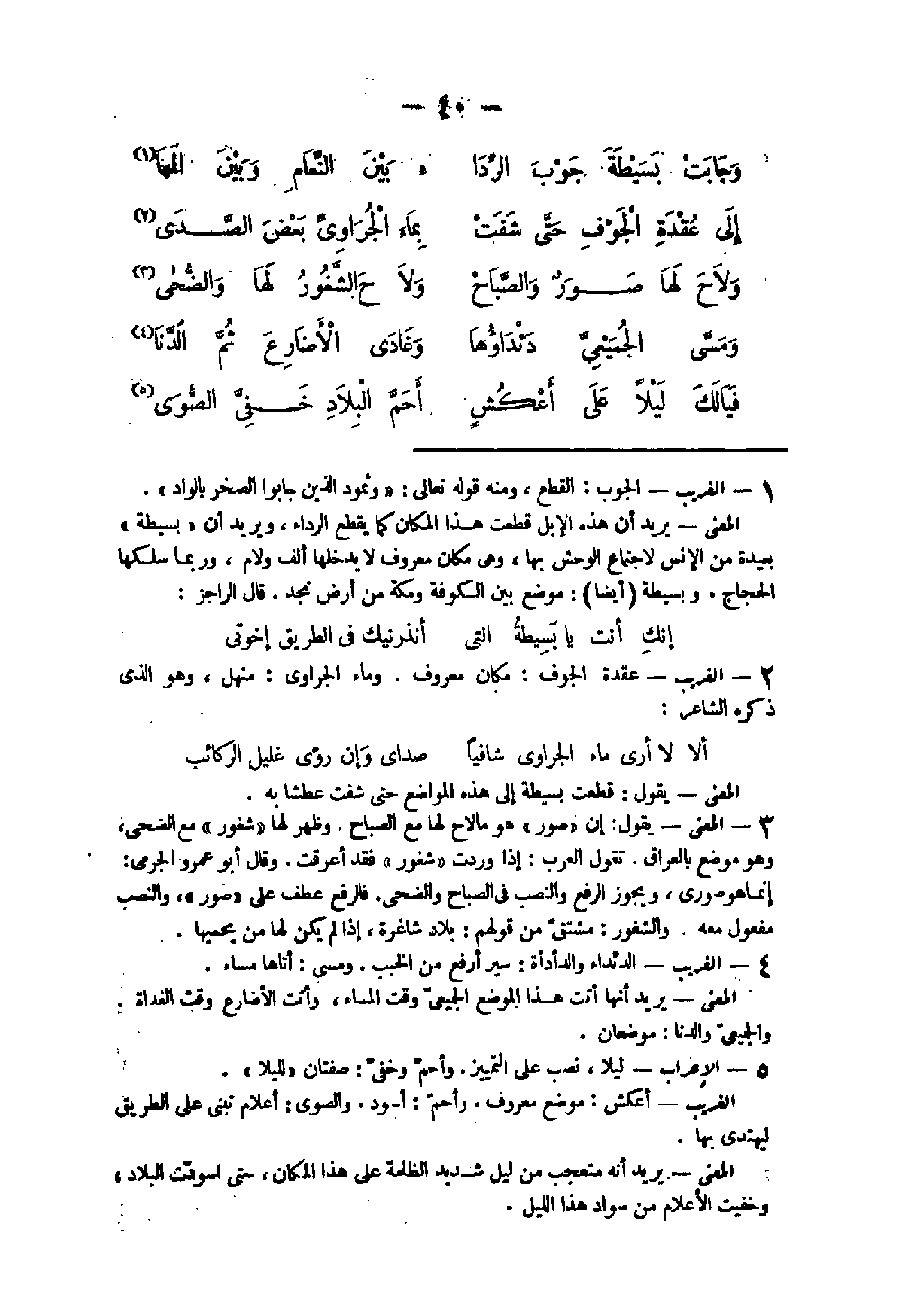 - الْغَرِيب الجوب الْقطع وَمِنْه قَوْله تَعَالَى {وَثَمُود الَّذين جابوا الصخر بالواد} الْمَعْنى يُرِيد أَن هَذِه الْإِبِل قطعت هَذَا الْمَكَان كَمَا يقطع الرِّدَاء وَيُرِيد أَن بسيطة بعيدَة من الْإِنْس لِاجْتِمَاع الْوَحْش بهَا وهى مَكَان مَعْرُوف لَا يدخلهَا ألف وَلَام وَرُبمَا سلكها الْحجَّاج وبسيطة أَيْضا مَوضِع بَين الْكُوفَة وَمَكَّة من أَرض نجد قَالَ الراجز