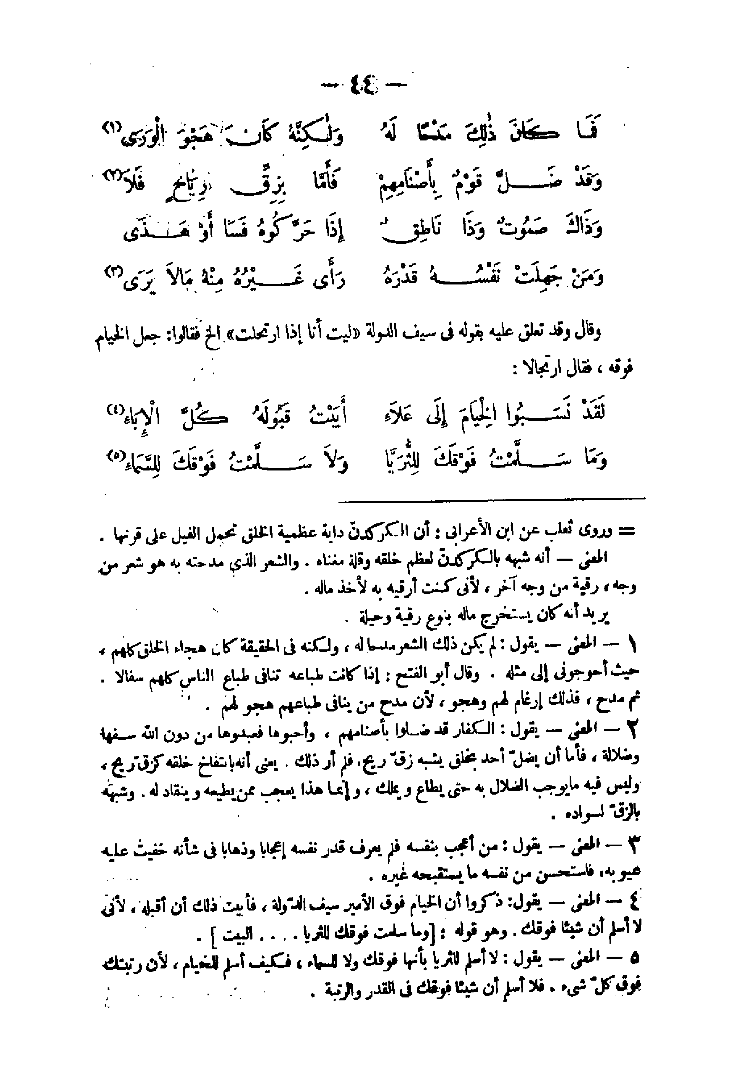 1 - الْمَعْنى يَقُول ذكرُوا أَن الْخيام فَوق الْأَمِير سيف الدولة فأبيت ذَلِك أَن أقبله لأنى لَا أسلم أَن شَيْئا فَوْقك وَهُوَ قَوْله