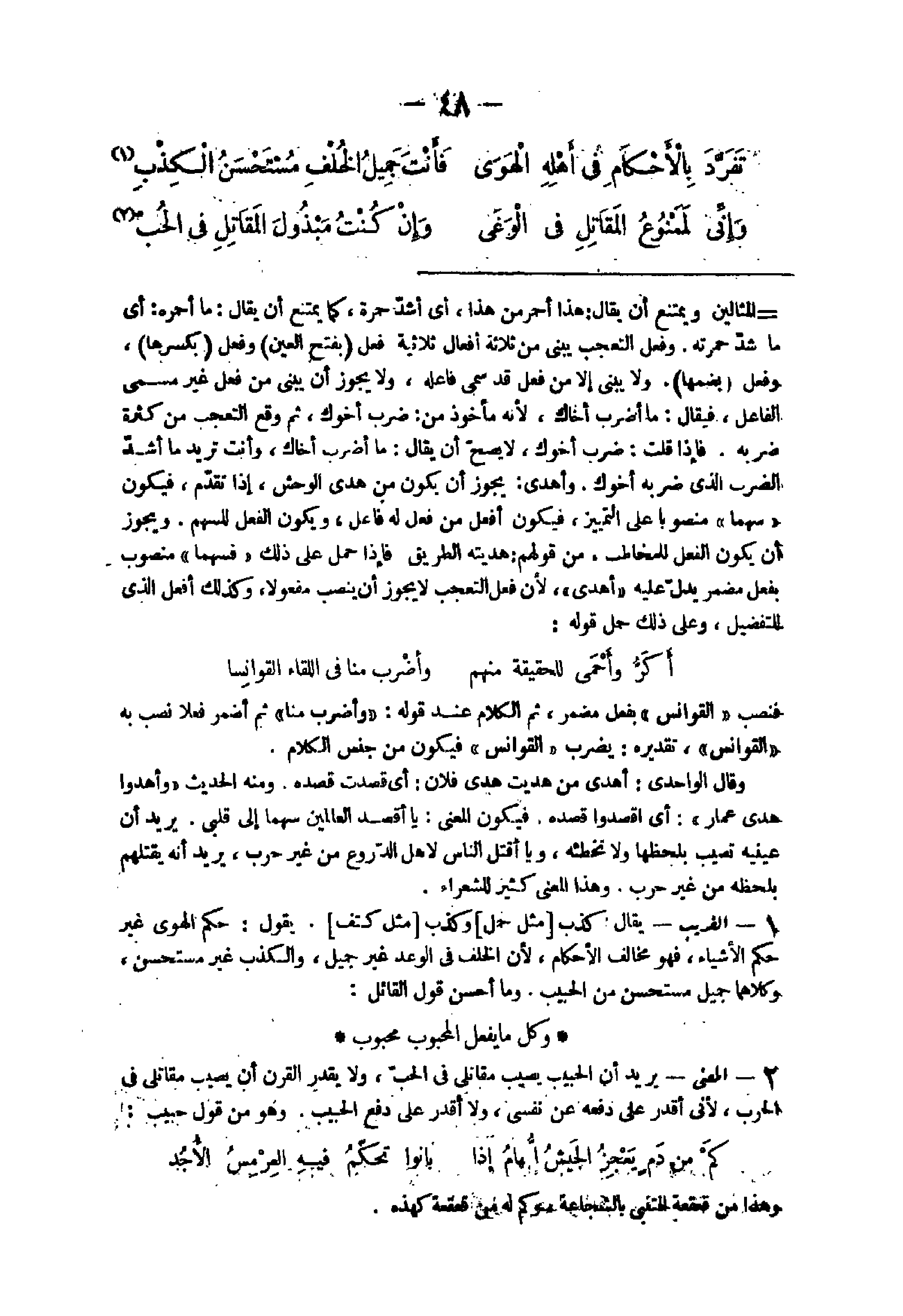 3 - الْمَعْنى يُرِيد أَن الحبيب يُصِيب مقاتلى فى الْحبّ وَلَا يقدر الْقرن أَن يُصِيب مقاتلي فى الْحَرْب لأنى أقدر على دَفعه عَن نفسى وَلَا أقدر على دفع عَن الحبيب وَهُوَ من قَول حبيب