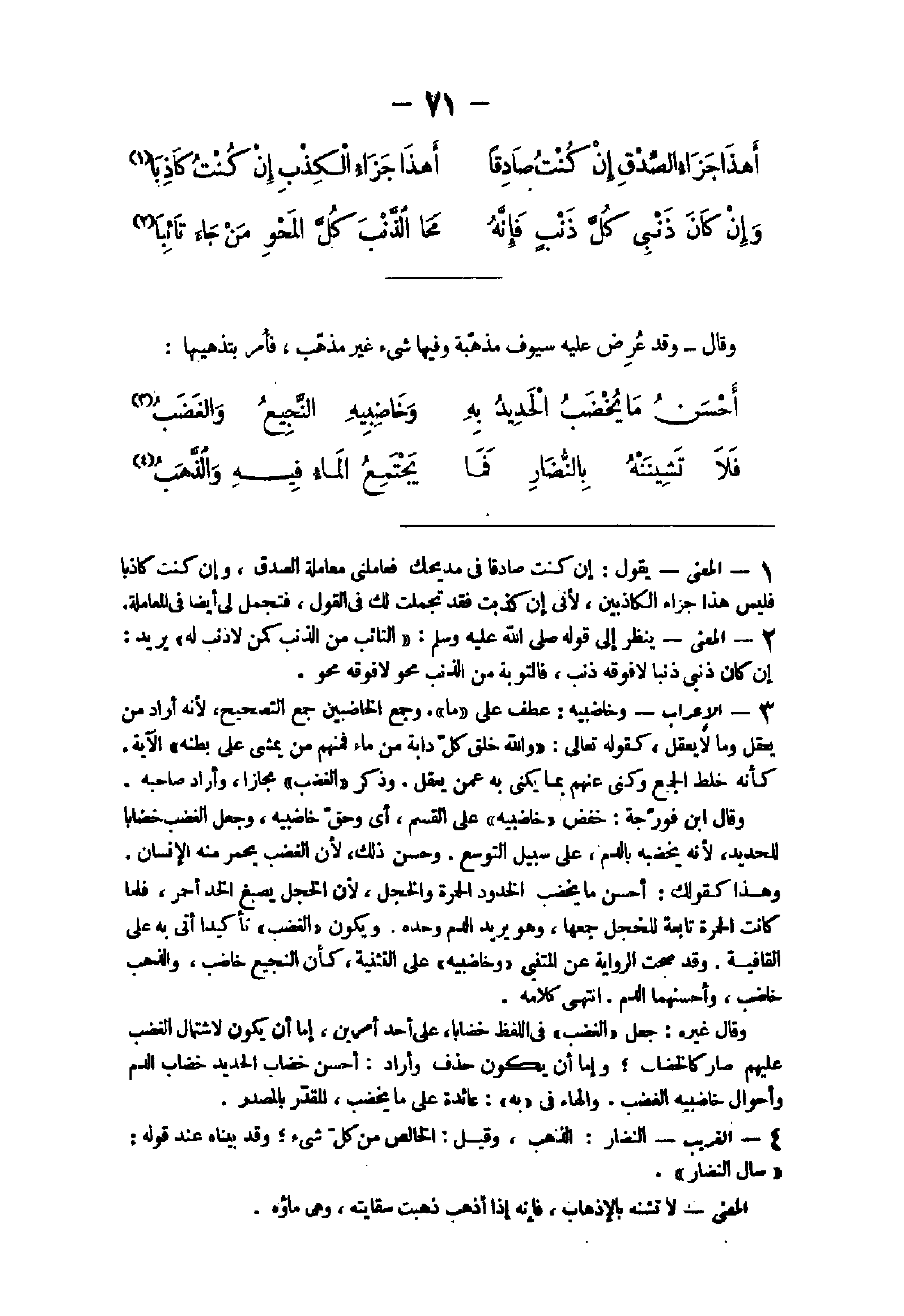 - 5 - الْمَعْنى يَقُول إِن كنت صَادِقا فى مديحك فعاملنى مُعَاملَة الصدْق وَإِن كنت كَاذِبًا فَلَيْسَ هَذَا جَزَاء الْكَاذِبين لأنى إِن كذبت فقد تجملت لَك فى القَوْل فتجمل لى أَيْضا فى الْمُعَامَلَة