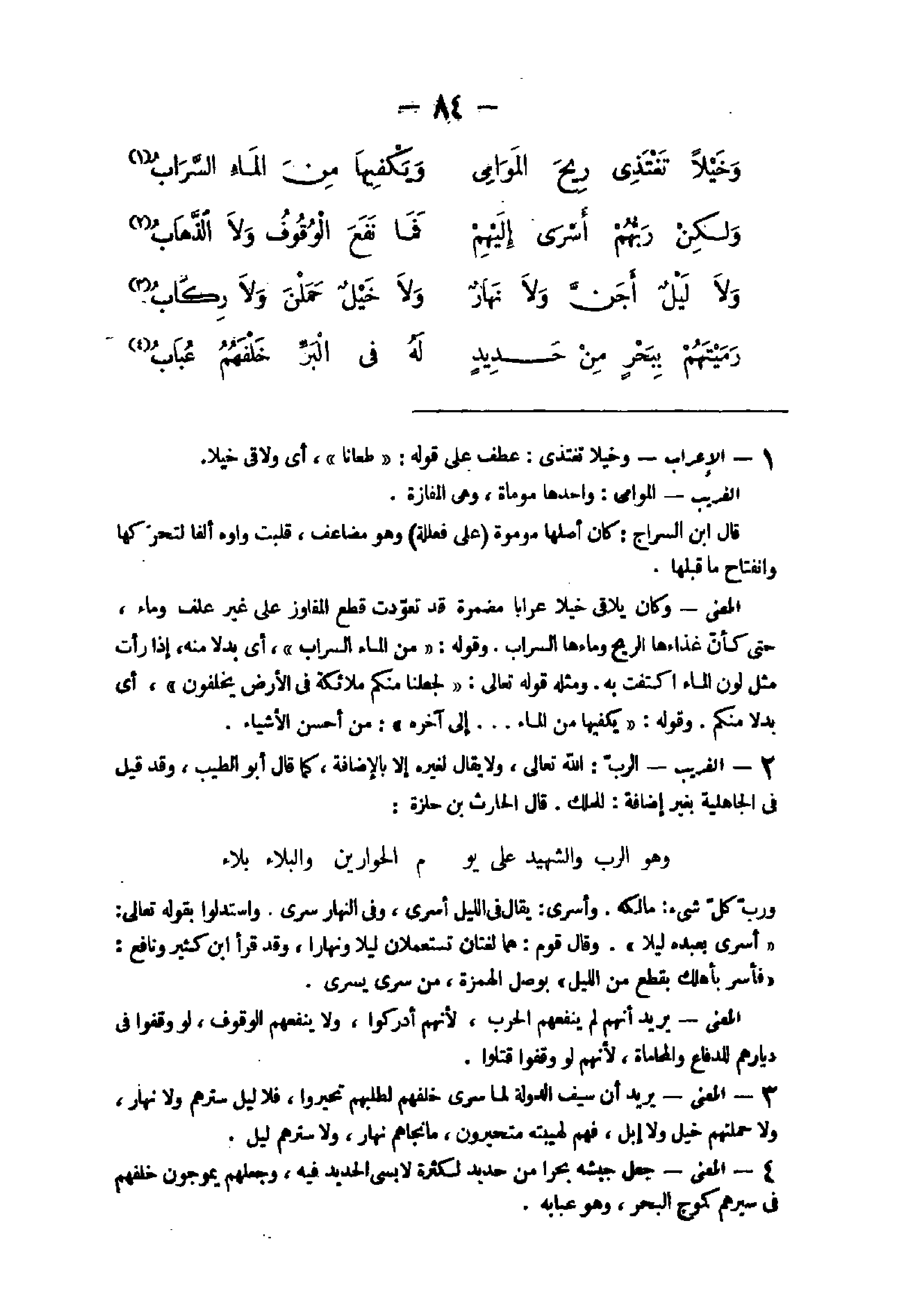 35 - الْمَعْنى يُرِيد أَن سيف الدولة لما سرى خَلفهم لطلبهم تحيروا فَلَا ليل سترهم وَلَا نَهَار وَلَا حملتهم خيل وَلَا إبل فهم لهيبته متحيرون مَا نجاهم نَهَار وَلَا سترهم ليل