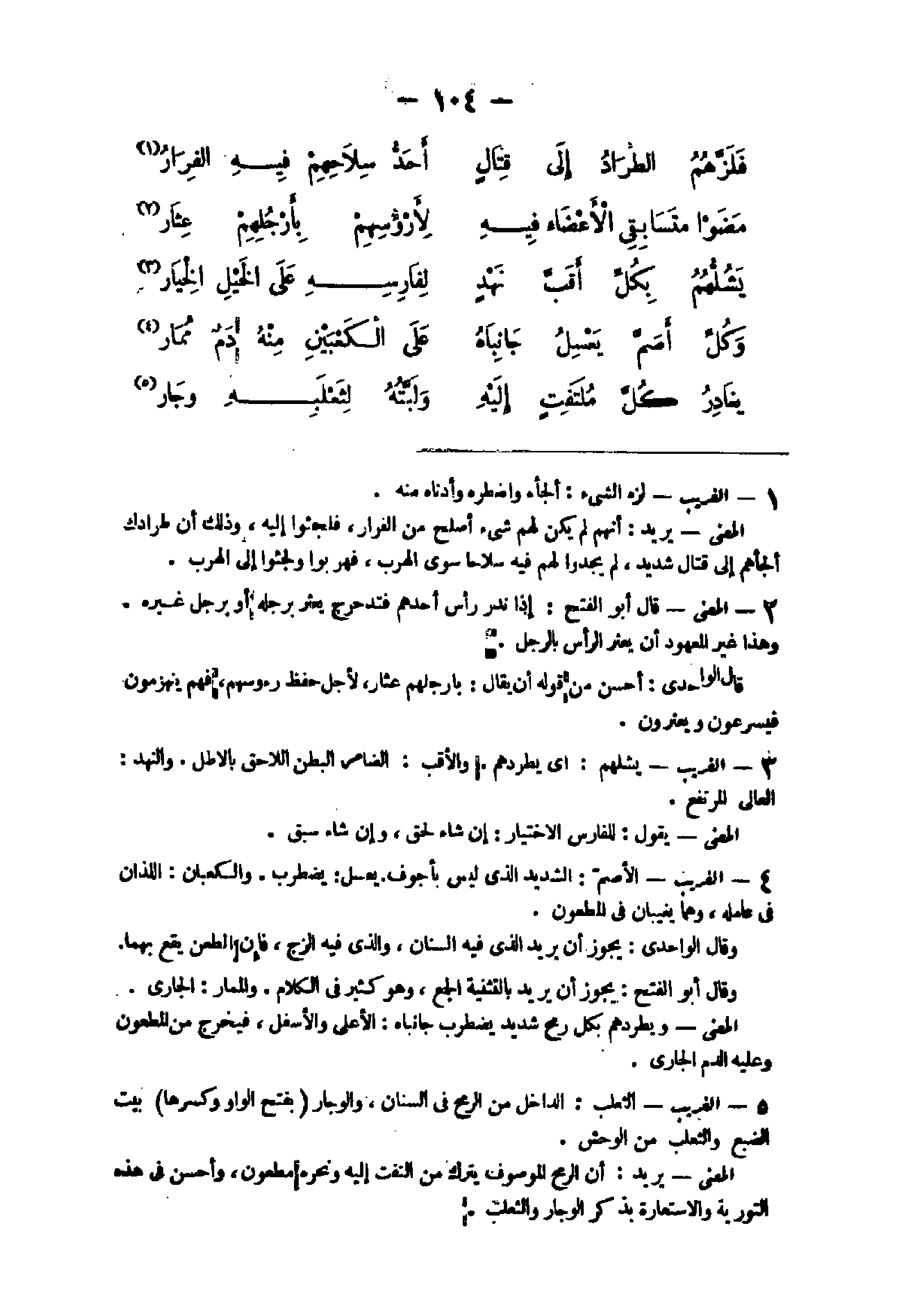 23 - الْغَرِيب الثَّعْلَب الدَّاخِل من الرمْح فى السنان والوجار بِفَتْح الْوَاو وَكسرهَا بَيت الضبع والثعلب من الْوَحْش الْمَعْنى يُرِيد أَن الرمْح الْمَوْصُوف يتْرك من الْتفت إِلَيْهِ ونحره مطعون وَأحسن فى هَذِه التورية والاستعارة بِذكر الوجار والثعلب