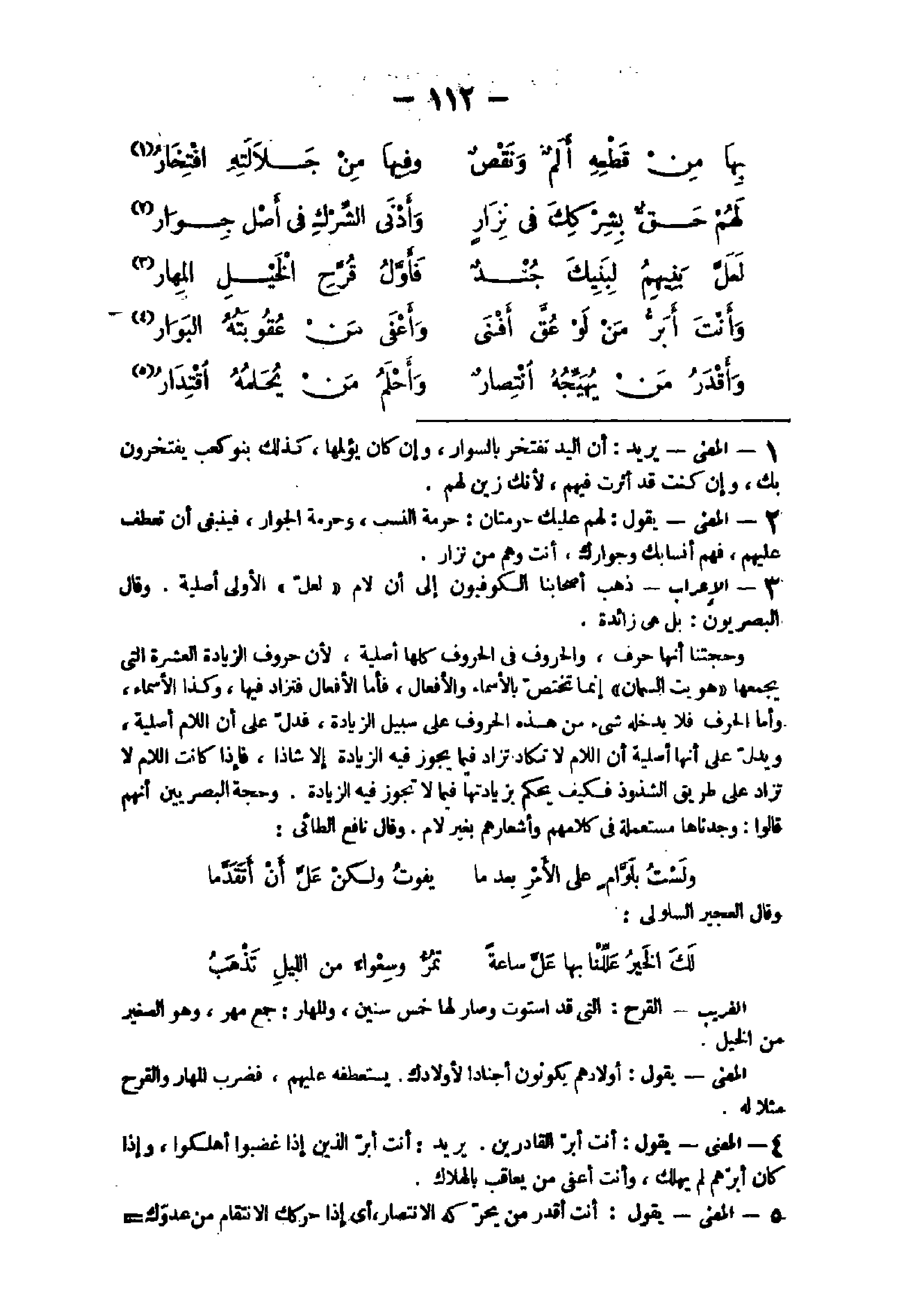 إِنَّمَا تخْتَص بالأسماء وَالْأَفْعَال فَأَما الْأَفْعَال فتزاد فِيهَا وَكَذَا الْأَسْمَاء وَأما الْحَرْف فَلَا يدْخلهُ شئ من هَذِه الْحُرُوف على سَبِيل الزِّيَادَة فَدلَّ على أَن اللَّام أَصْلِيَّة وَيدل على أَنَّهَا أَصْلِيَّة أَن اللَّام لَا تكَاد تزاد فِيمَا يجوز فِيهِ الزِّيَادَة إِلَّا شاذا فَإِذا كَانَت اللَّام لَا تزاد على طَرِيق الشذوذ فَكيف يحكم بزيادتها فِيمَا لَا تجوز فِيهِ الزِّيَادَة وَحجَّة الْبَصرِيين أَنهم قَالُوا وجدناها مستعملة فى كَلَامهم وأشعارهم بِغَيْر لَام وَقَالَ نَافِع الطائى