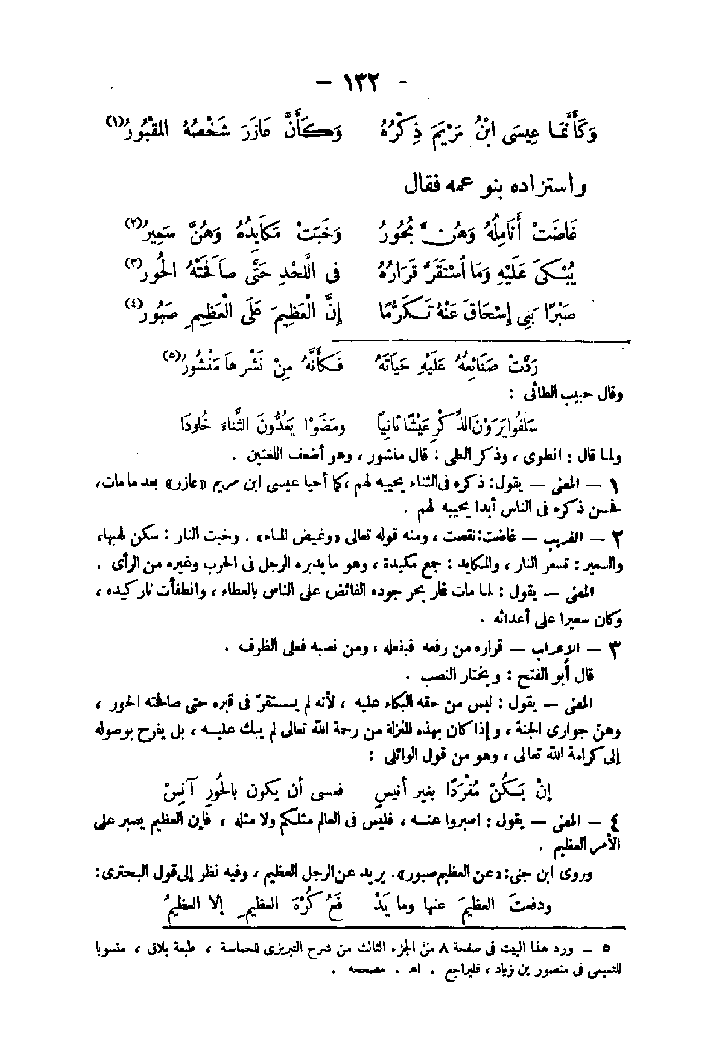 - 13 - الْمَعْنى يَقُول ذكره فى الثَّنَاء يحييه لَهُم كَمَا أَحْيَا عِيسَى ابْن مَرْيَم عازر بعد مَا مَاتَ فَحسن ذكره فى النَّاس أبدا يحييه لَهُم