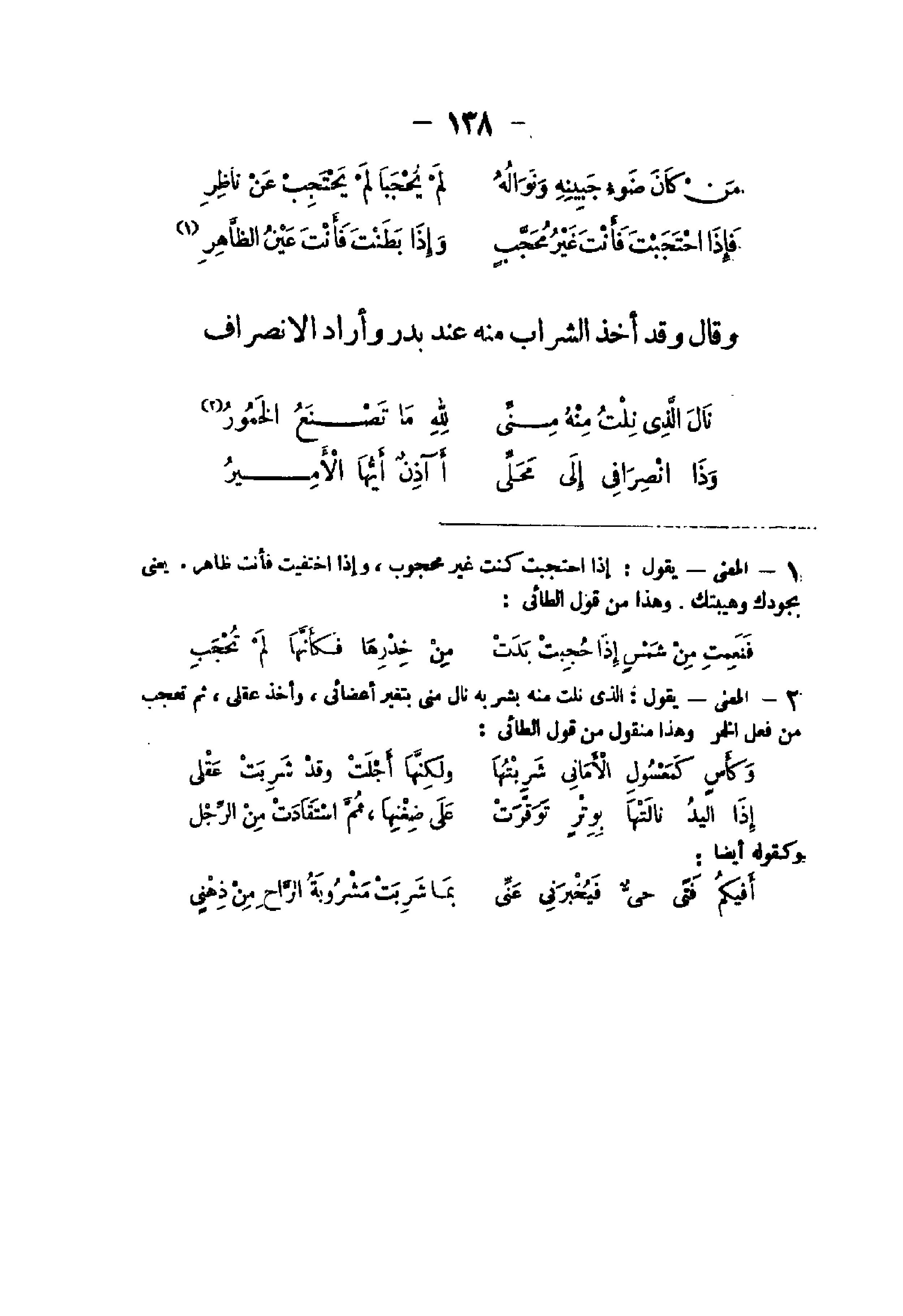 - 1 - الْمَعْنى يَقُول الذى نلْت مِنْهُ بشربه نَالَ منى بِتَغَيُّر أعضائى وَأخذ عقلى ثمَّ تعجب من فعل الْخمر وَهَذَا مَنْقُول من قَول الطائى
