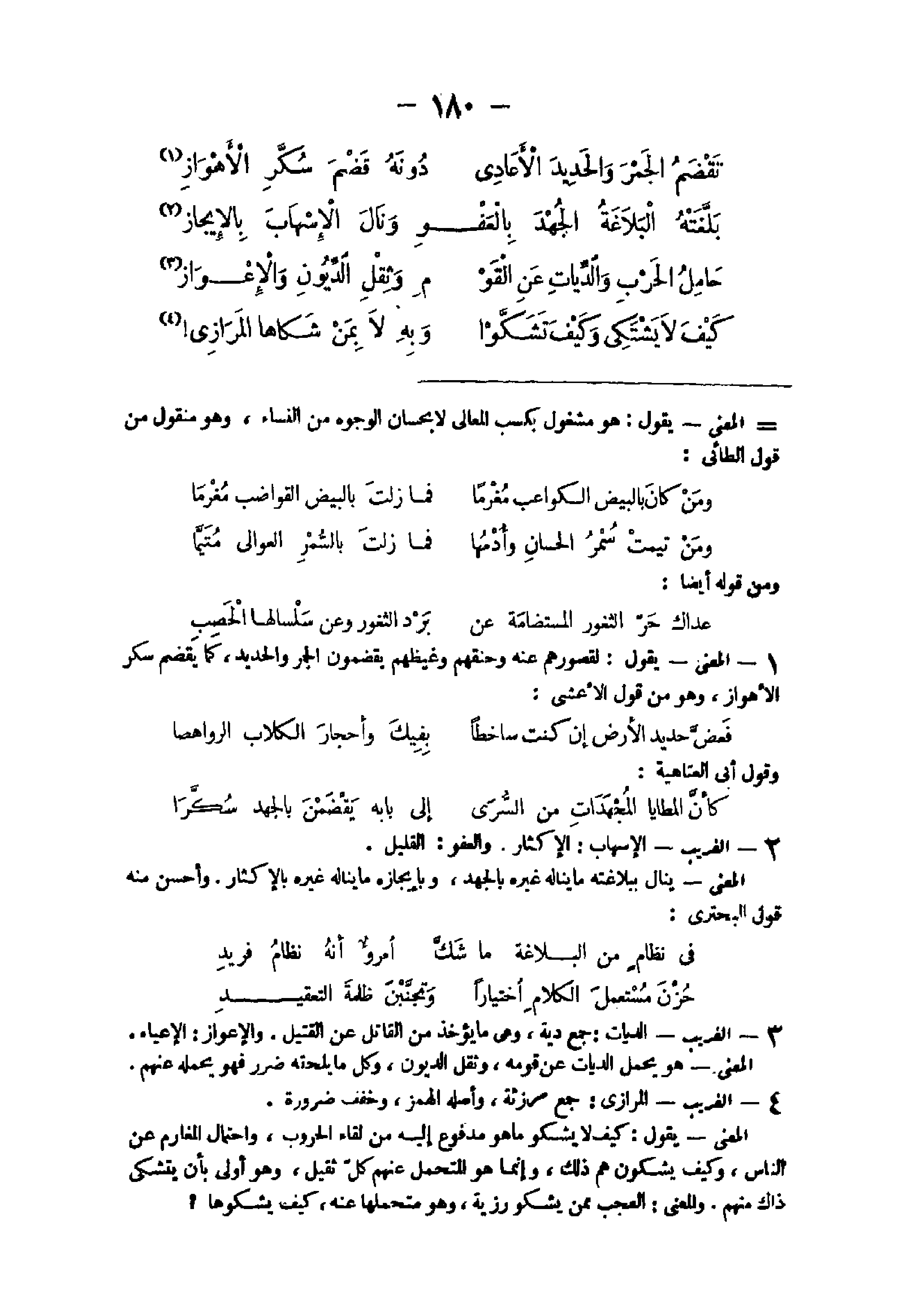 21 - الْغَرِيب الإسهاب الْإِكْثَار وَالْعَفو الْقَلِيل الْمَعْنى ينَال ببلاغته مَا يَنَالهُ غَيره بالجهد وبإيجازه مَا يَنَالهُ غَيره بالإكثار وَأحسن مِنْهُ قَول البحترى