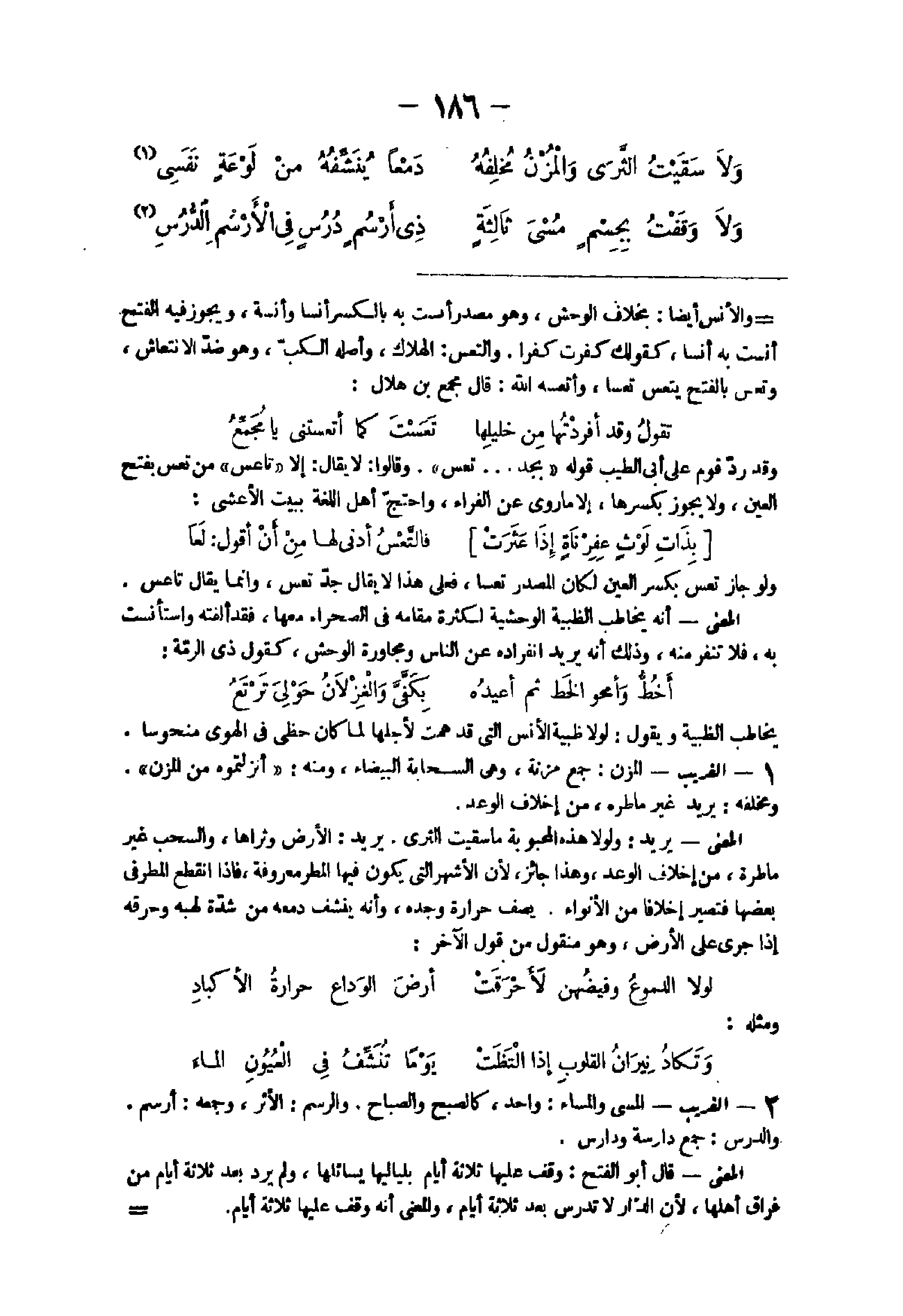 ومخلفه يُرِيد غير ماطره من إخلاف الْوَعْد الْمَعْنى يُرِيد وَلَوْلَا هَذِه المحبوبة مَا سقيت الثرى يُرِيد الأَرْض وثراها والسحب غير ماطرة من إخلاف الْوَعْد وَهَذَا جَائِز لِأَن الْأَشْهر الَّتِى يكون فِيهَا الْمَطَر مَعْرُوفَة فَإِذا انْقَطع الْمَطَر فى بَعْضهَا فَتَصِير إخلافا من الأنواء يصف حرارة وجده وَأَنه ينشف دمعه من شدَّة لهبه وَحَرقه إِذا جرى على الأَرْض وَهُوَ مَنْقُول من قَول الآخر