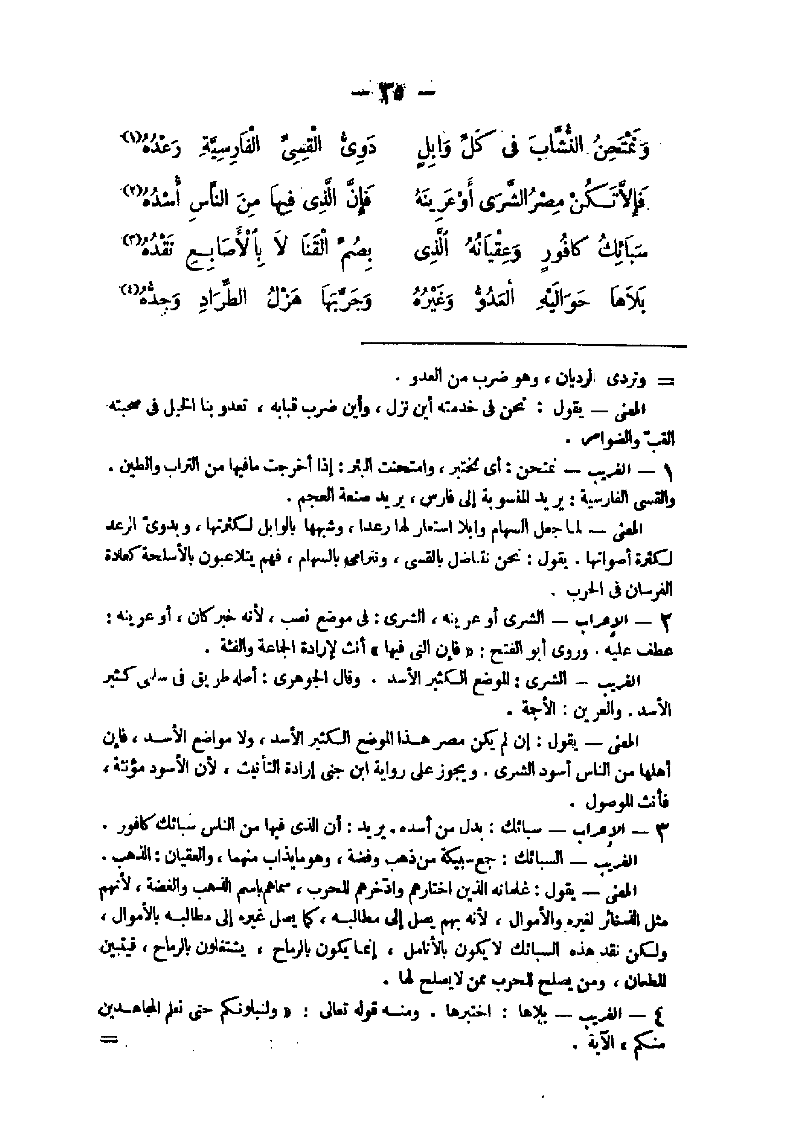 أنث لإِرَادَة الْجَمَاعَة والفئة الْغَرِيب الشرى الْموضع الْكثير الْأسد وَقَالَ الجوهرى أَصله طَرِيق فى سلمى كثير الْأسد والعرين الأجمة الْمَعْنى يَقُول إِن لم تكن مصر هَذَا الْموضع الْكثير الْأسد وَلَا مَوَاضِع الْأسد فَإِن أَهلهَا من النَّاس أسود الشرى وَيجوز على رِوَايَة ابْن جنى إِرَادَة التَّأْنِيث لِأَن الْأسود مُؤَنّثَة فأنث الْمَوْصُول