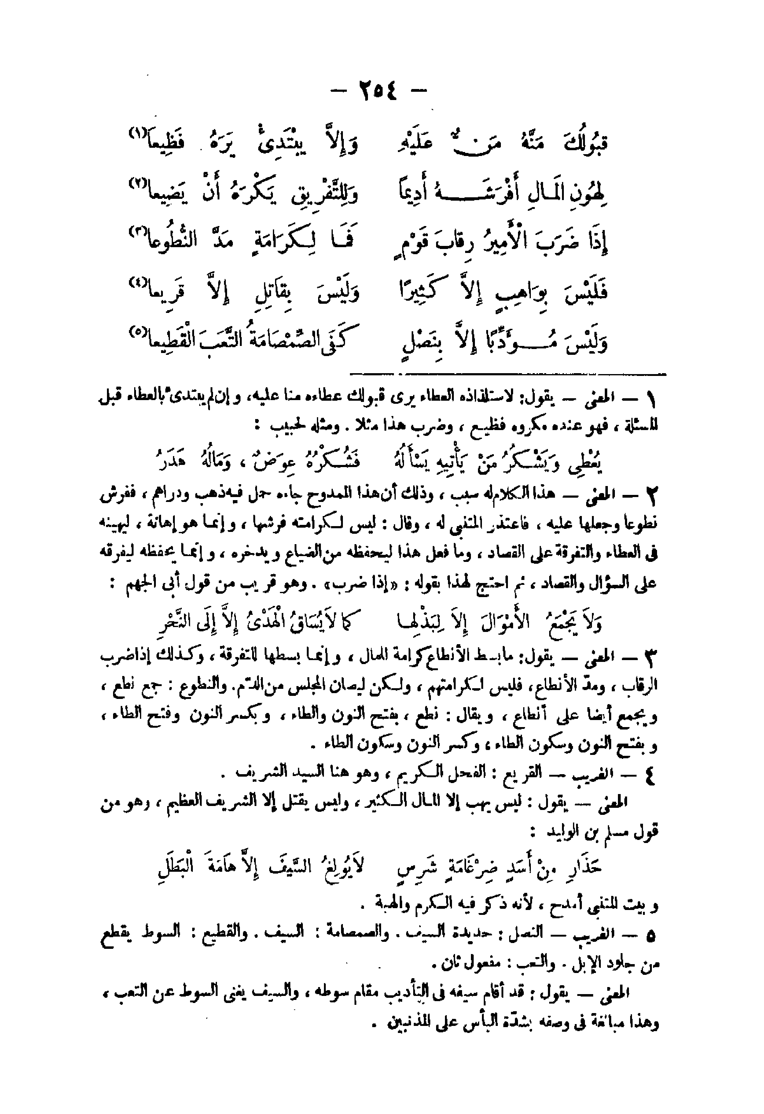 20 - الْغَرِيب القريع الْفَحْل الْكَرِيم وَهُوَ هُنَا السَّيِّد الشريف الْمَعْنى يَقُول لَيْسَ يهب إِلَّا المَال الْكثير وَلَيْسَ يقتل إِلَّا الشريف الْعَظِيم وَهُوَ من قَول مُسلم بن الْوَلِيد