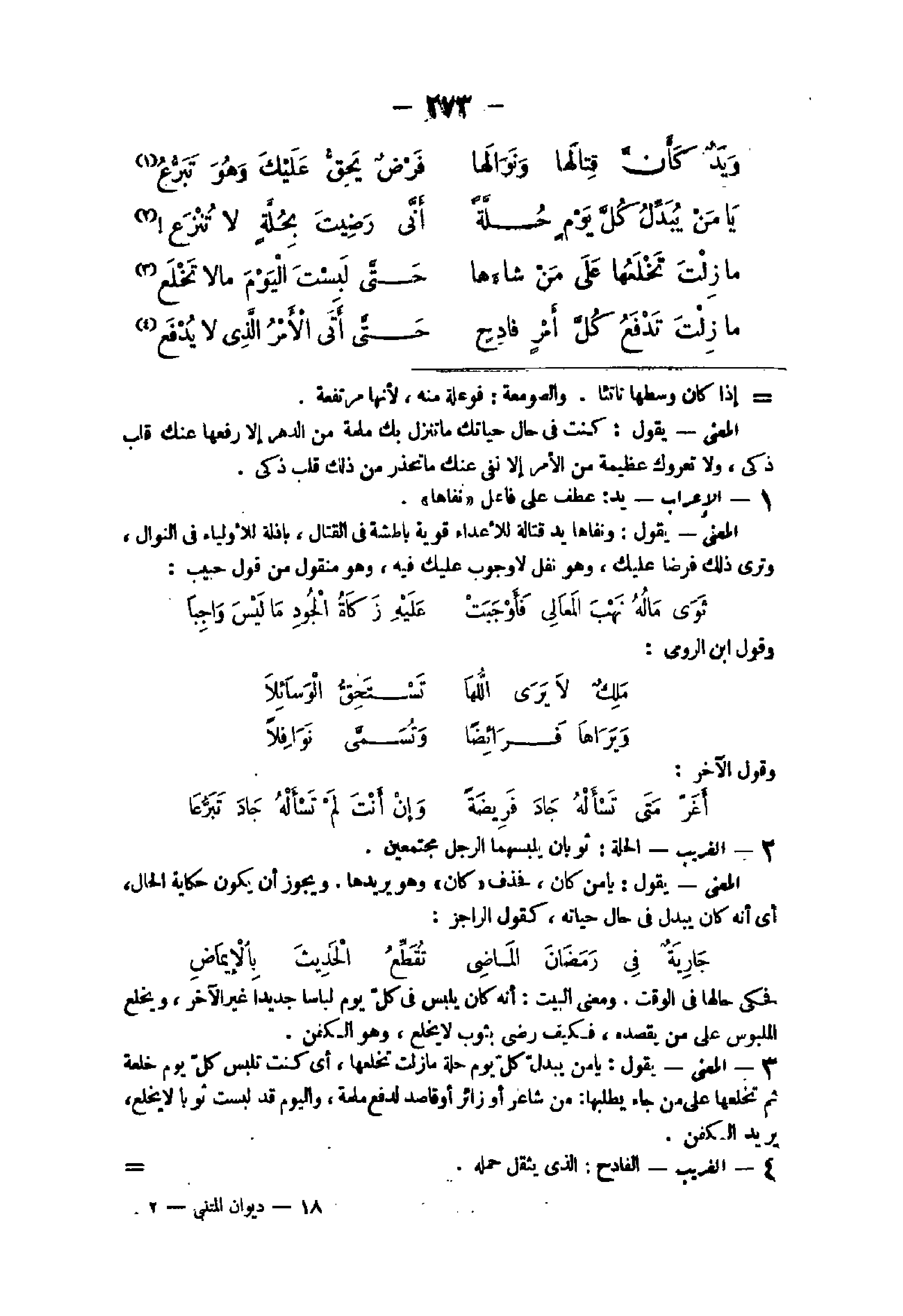 20 - الْمَعْنى يَقُول يَا من يُبدل كل يَوْم حلَّة مَا زلت تخلعها أى كنت تلبس كل يَوْم خلعة ثمَّ تخلعها على من جَاءَ يطْلبهَا من شَاعِر أَو زائر أَو قَاصد لدفع ملمة وَالْيَوْم قد لبست ثوبا لَا يخلع يُرِيد الْكَفَن