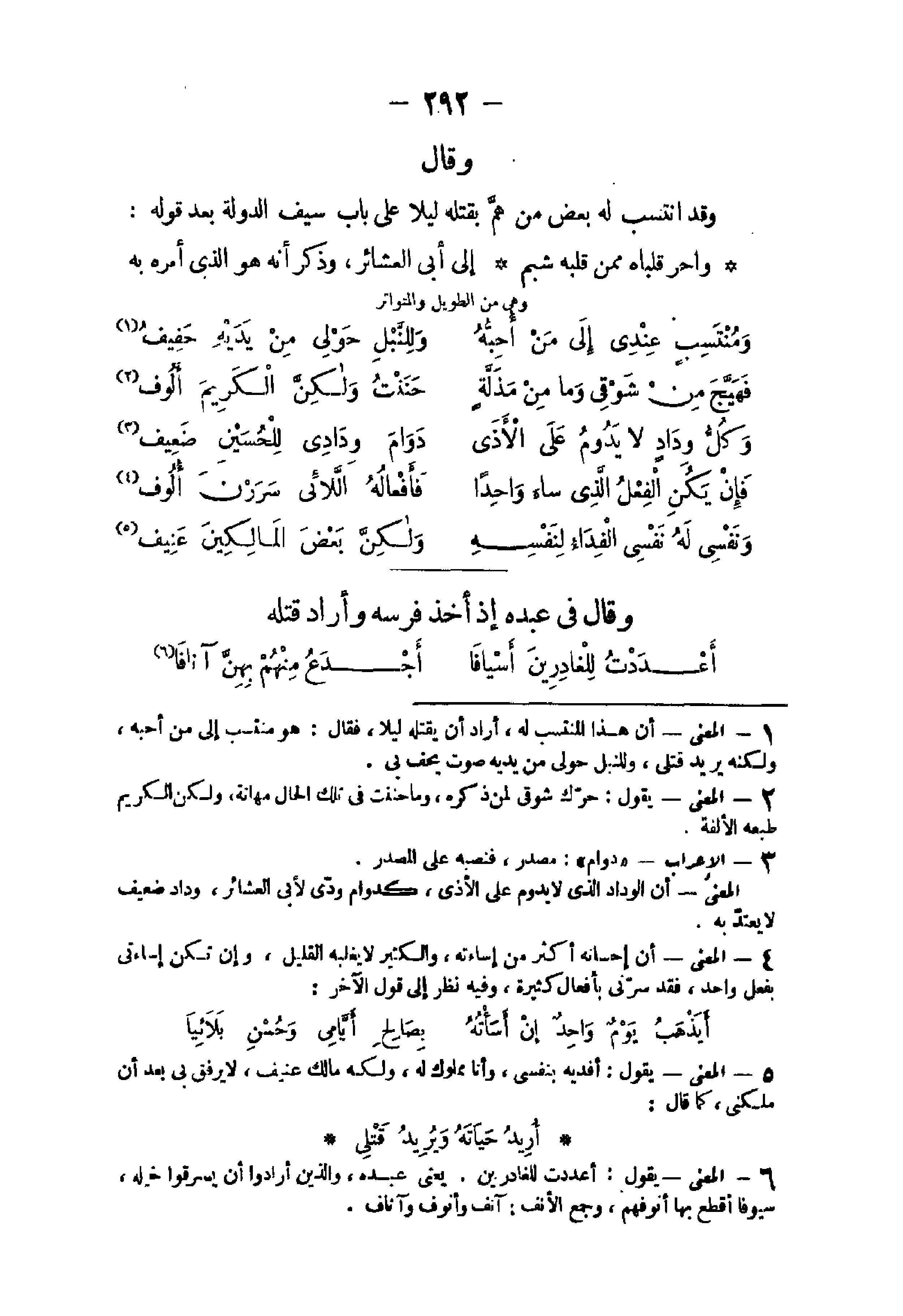 - 1 - الْمَعْنى أَن هَذَا المنتسب لَهُ أَرَادَ أَن يقْتله لَيْلًا فَقَالَ هُوَ منتسب إِلَى من أحبه وَلكنه يُرِيد قَتْلَى وللنبل حولى من يَدَيْهِ صَوت يحف بى
