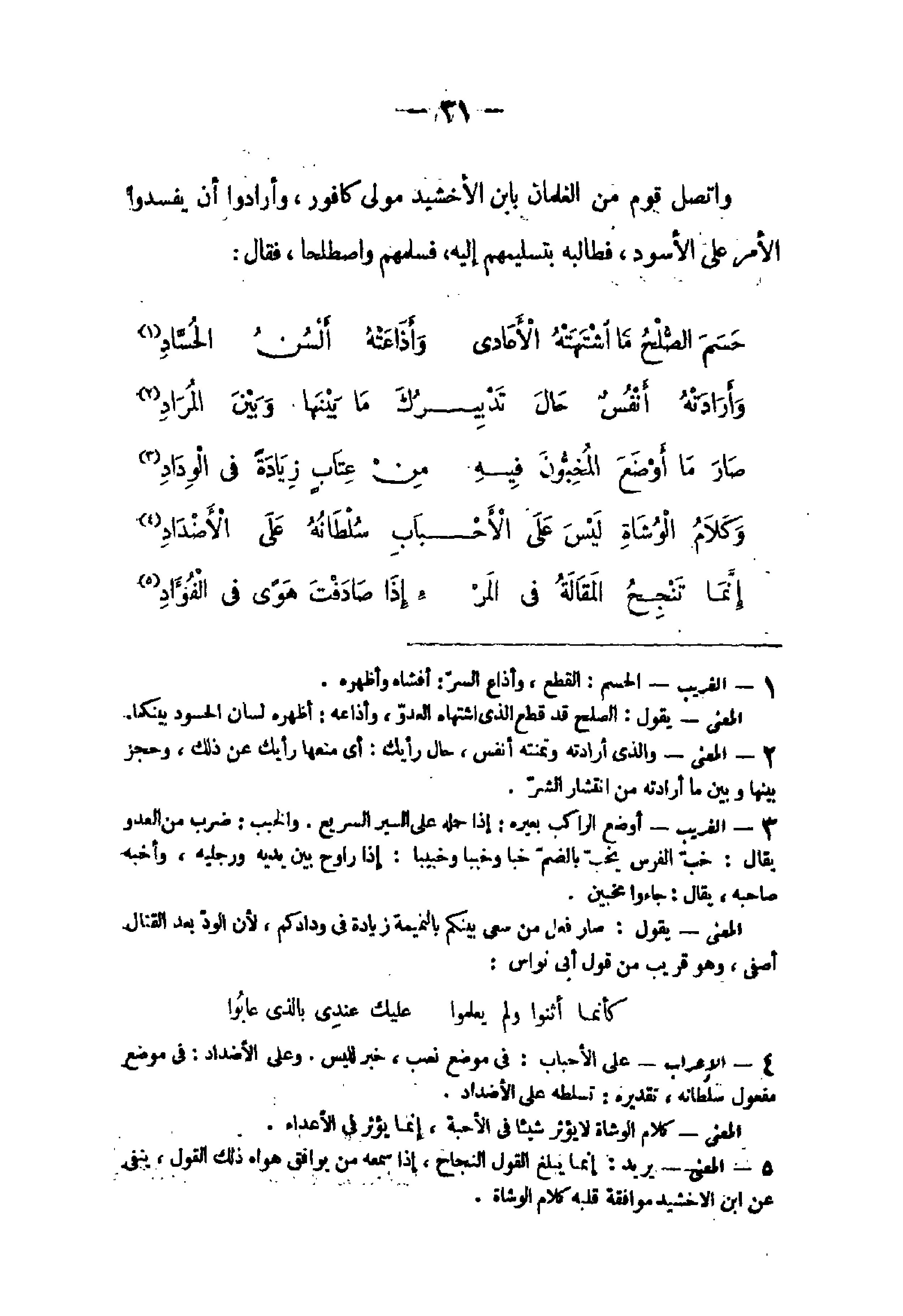 5 - الْمَعْنى يُرِيد إِنَّمَا يبلغ القَوْل النجاح إِذا سَمعه من يُوَافق هَوَاهُ ذَلِك القَوْل ينفى عَن ابْن الأخشيد مُوَافقَة قلبه كَلَام الوشاة