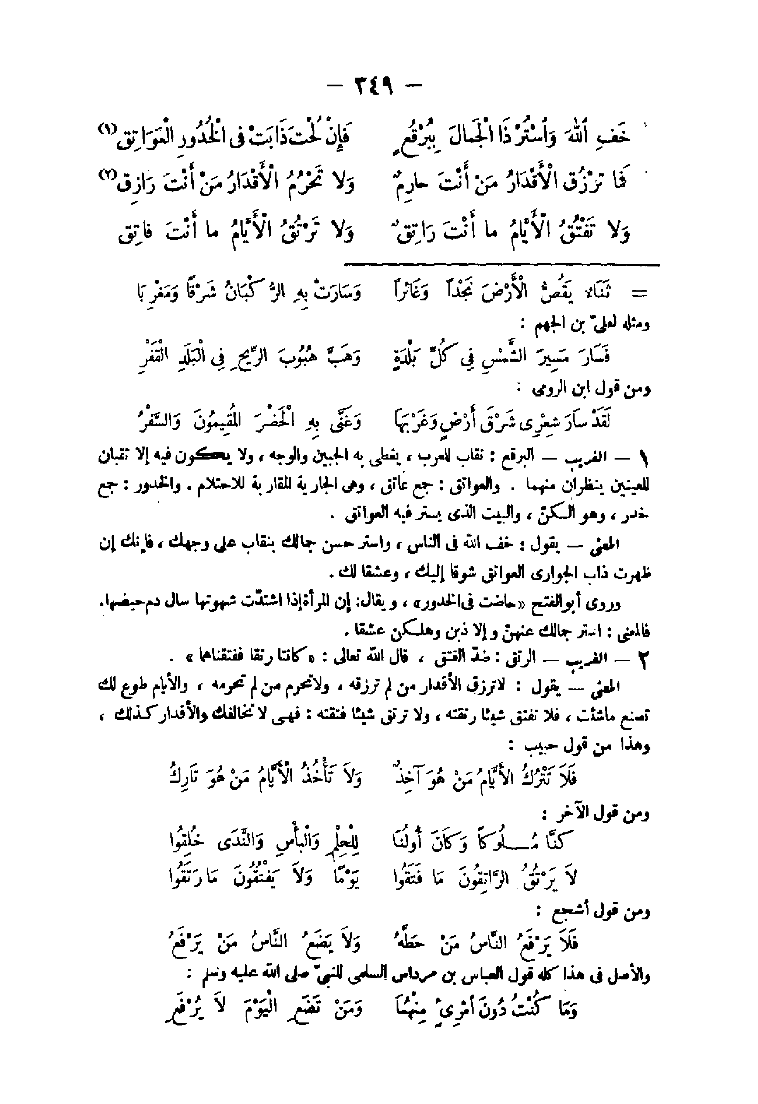 وَالْأَصْل فى هَذَا كُله قَول الْعَبَّاس بن مرداس السلمى للنبى