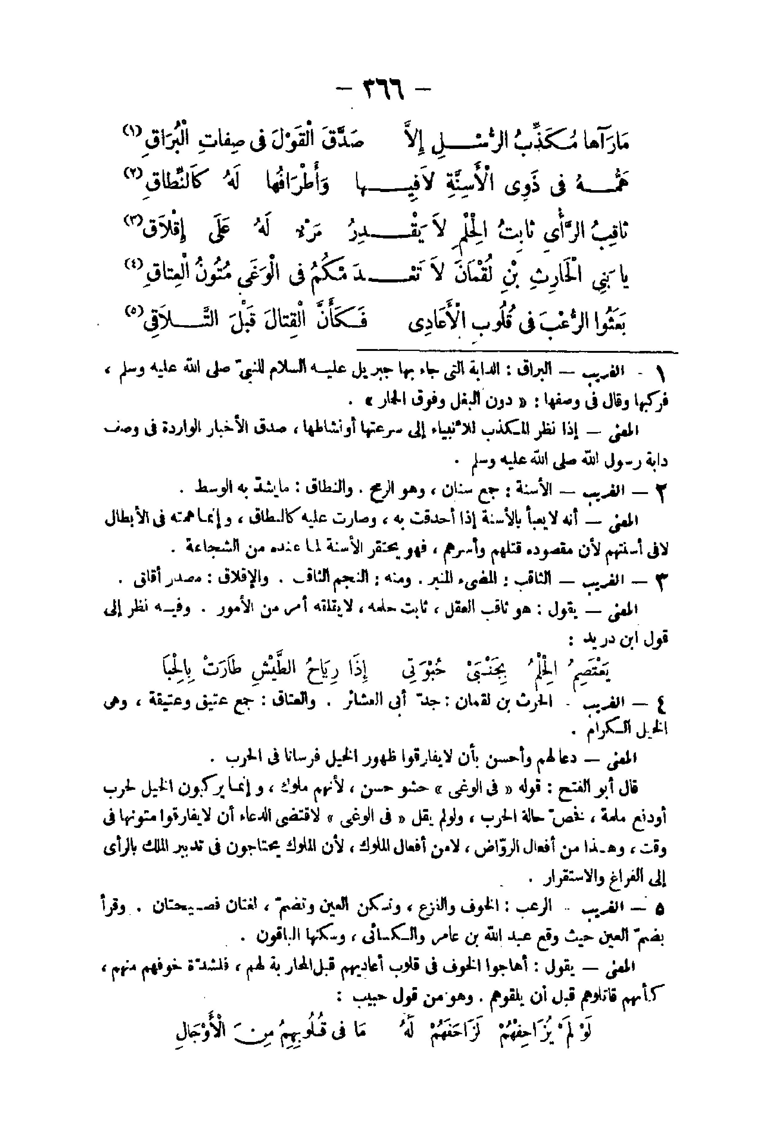 20 - الْغَرِيب الرعب الْخَوْف والفزع وتسكن الْعين وتضم لُغَتَانِ فصيحتان وَقَرَأَ بِضَم الْعين حَيْثُ وَقع عبد الله بن عَامر والكسائى وسكنها الْبَاقُونَ الْمَعْنى يَقُول هاجوا الْخَوْف فى قُلُوب أعاديهم قبل الْمُحَاربَة لَهُم فلشدة خوفهم مِنْهُم كَأَنَّهُمْ قاتلوهم قبل ان يلقوهم وَهُوَ من قَول حبيب