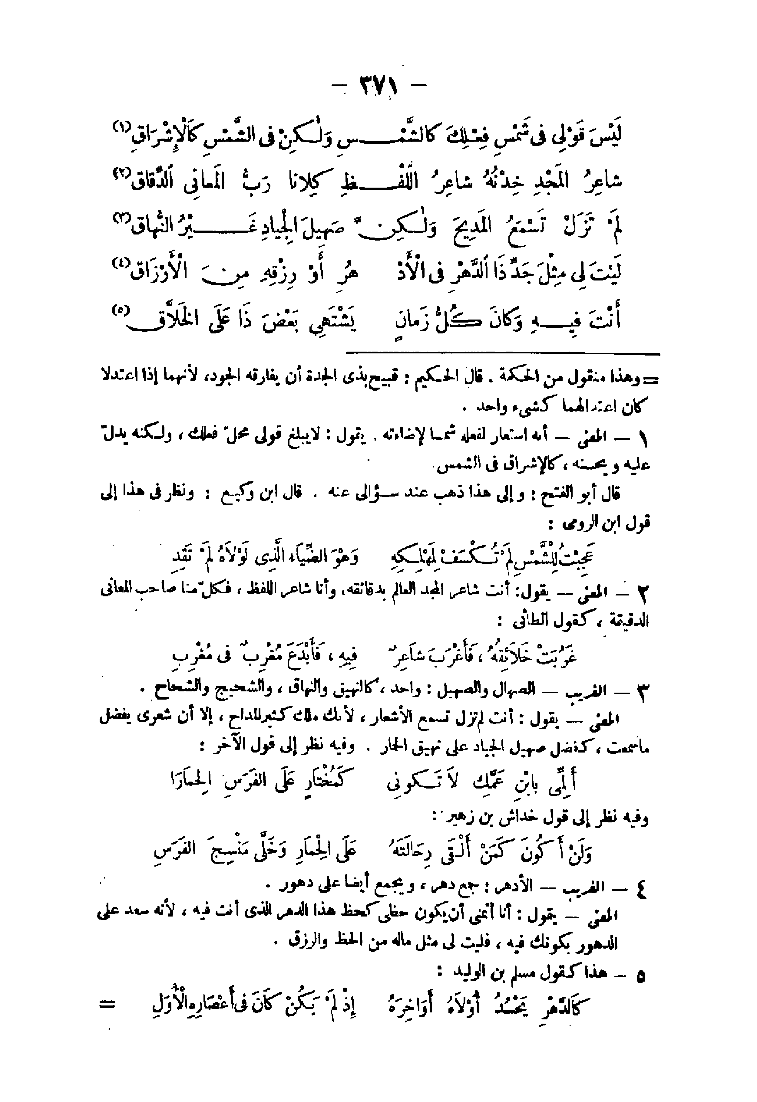 - الْمَعْنى أَنه اسْتعَار لفعله شمسا لإضاءته يَقُول لَا يبلغ قولى مَحل فعلك وَلكنه يدل عَلَيْهِ ويحسنه كالإشراق فى الشَّمْس قَالَ أَبُو الْفَتْح وَإِلَى هَذَا ذهب عِنْد سؤالى عَنهُ قَالَ ابْن وَكِيع وَنظر فى هَذَا إِلَى قَول ابْن الرومى