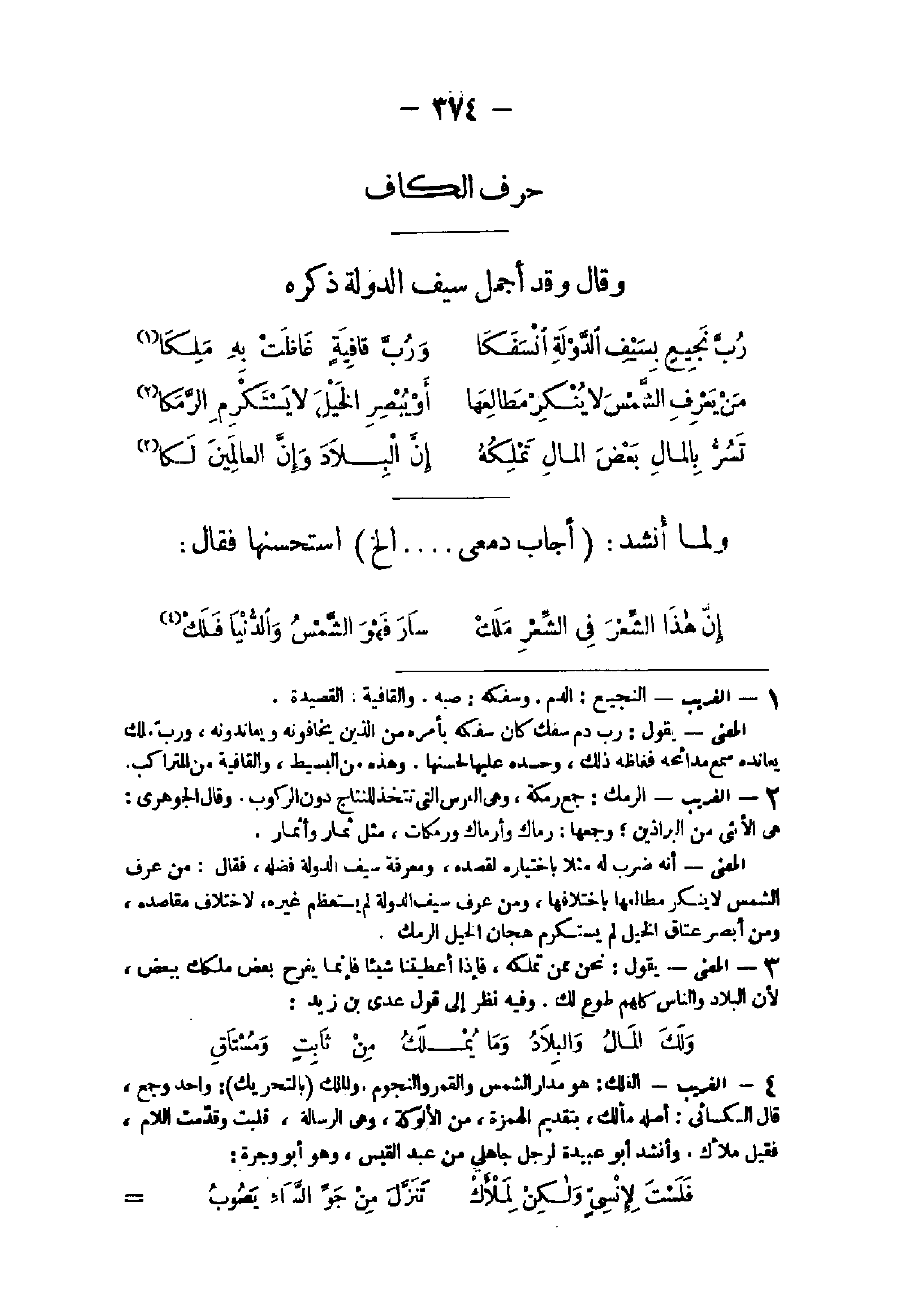 - 1 - الْغَرِيب النجيع الدَّم وسفكه صبه والقافية القصيدة الْمَعْنى يَقُول رب دم سفك كَانَ سفكه بأَمْره من الَّذين يخافونه ويعاندونه وَرب ملك يعانده سمع مدائحه فَغَاظَهُ ذَلِك وحسده عَلَيْهَا لحسنها وَهَذِه من الْبَسِيط والقافية من المتراكب