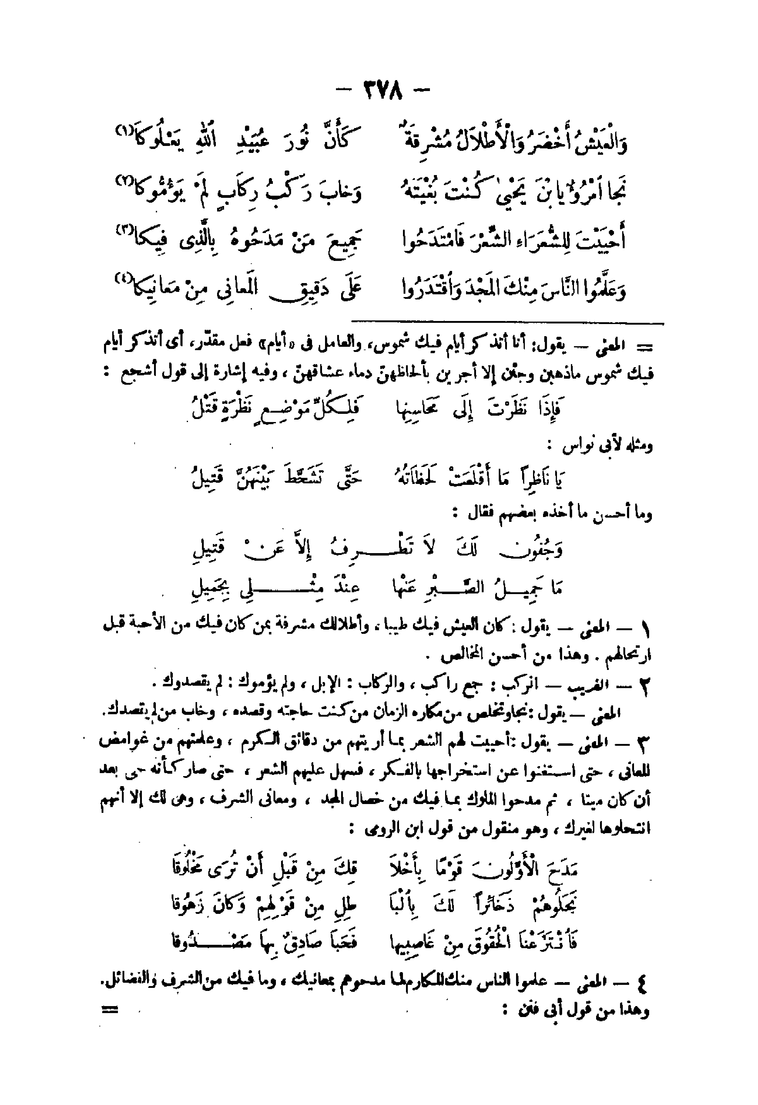 - الْمَعْنى يَقُول كَانَ الْعَيْش فِيك طيبا وأطلالك مشرقة بِمن كَانَ فِيك من الْأَحِبَّة قبل ارتحالهم // وَهَذَا من أحسن المخالص //