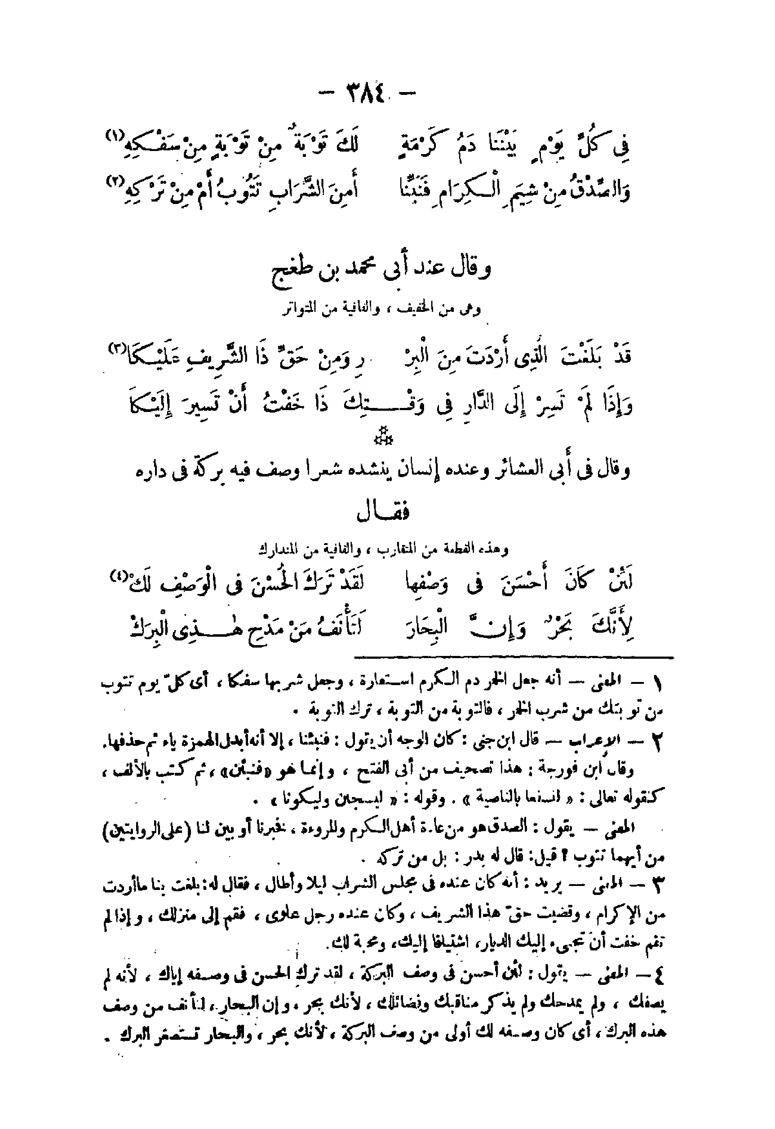 - 1 - الْمَعْنى يُرِيد أَنه كَانَ عِنْده فى مجْلِس الشّرْب لَيْلًا وَأطَال فَقَالَ لَهُ بلغت بِنَا مَا أردْت من الْإِكْرَام وقضيت حق هَذَا الشريف وَكَانَ عِنْده رجل علوى فَقُمْ إِلَى مَنْزِلك وَإِذا لم تقم خفت أَن تجئ إِلَيْك الديار اشتياقا إِلَيْك ومحبة لَك