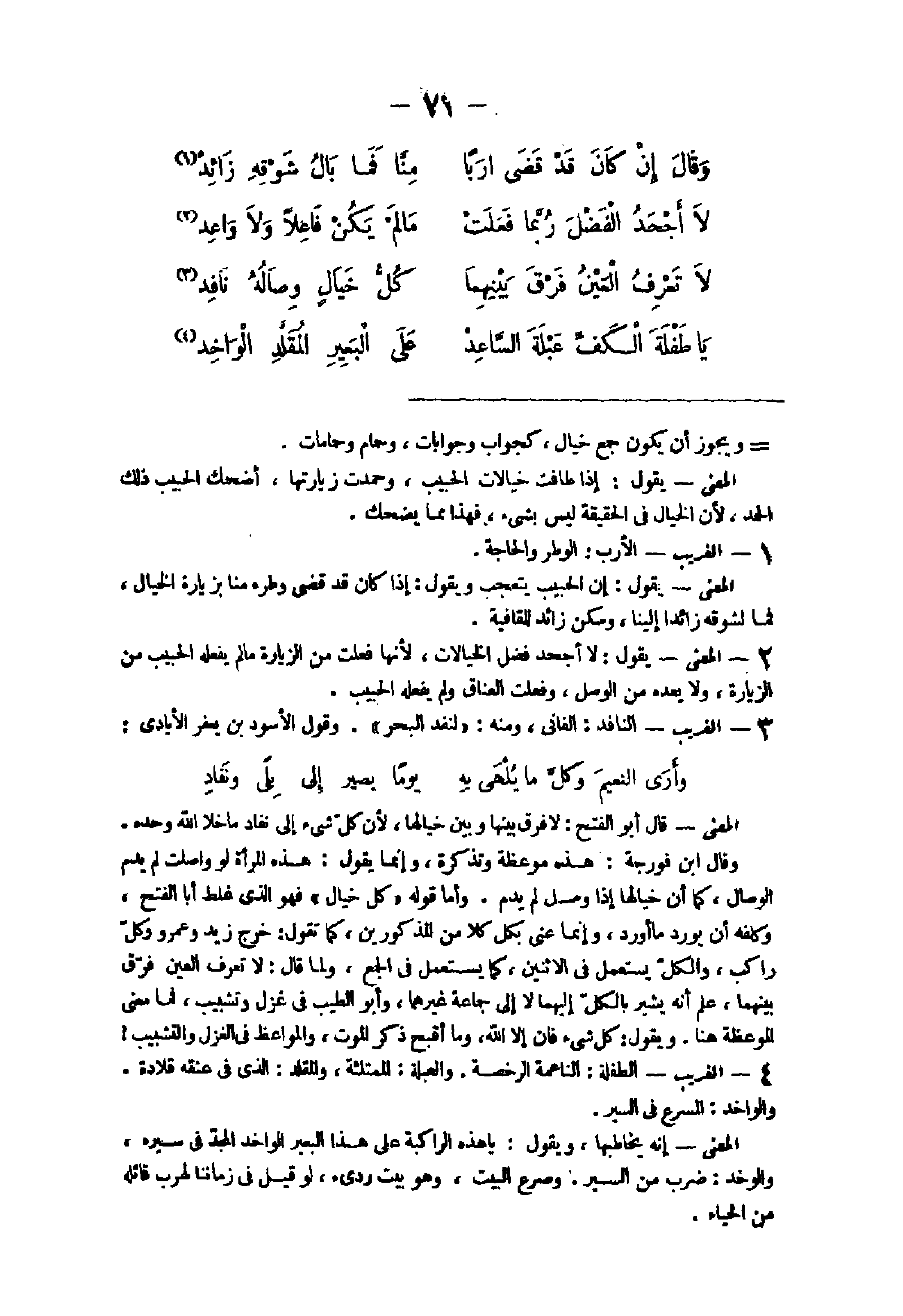 - الْغَرِيب الأرب الوطر وَالْحَاجة الْمَعْنى يَقُول إِن الحبيب يتعجب وَيَقُول إِذا كَانَ قد قضى وطره منا بزيارة الخيال فَمَا لشوقه زَائِدا إِلَيْنَا وَسكن زَائِد للقافية