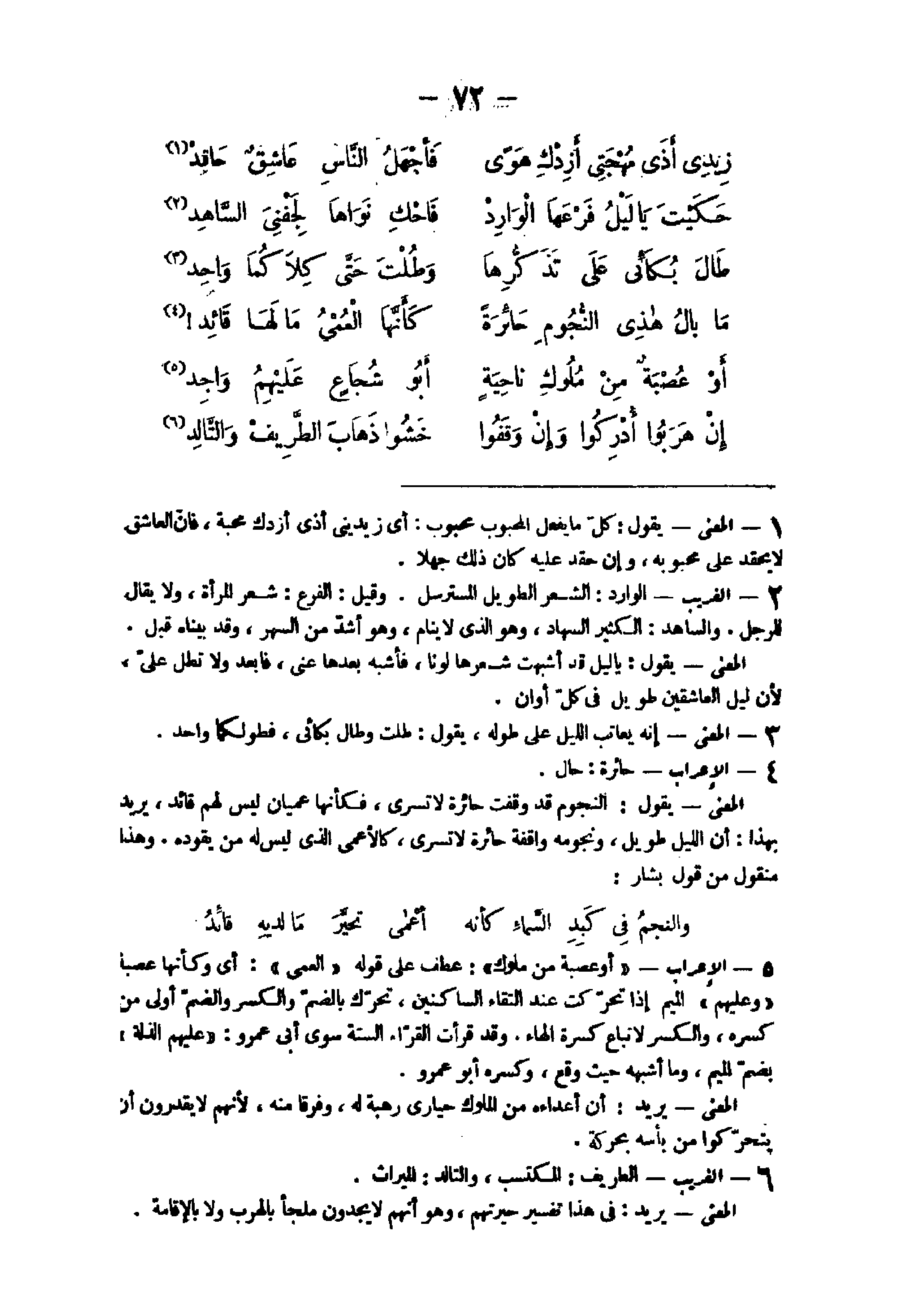 12 - الْمَعْنى إِنَّه يُعَاتب اللَّيْل على طوله يَقُول طلت وَطَالَ بكائى فطولكما وَاحِد