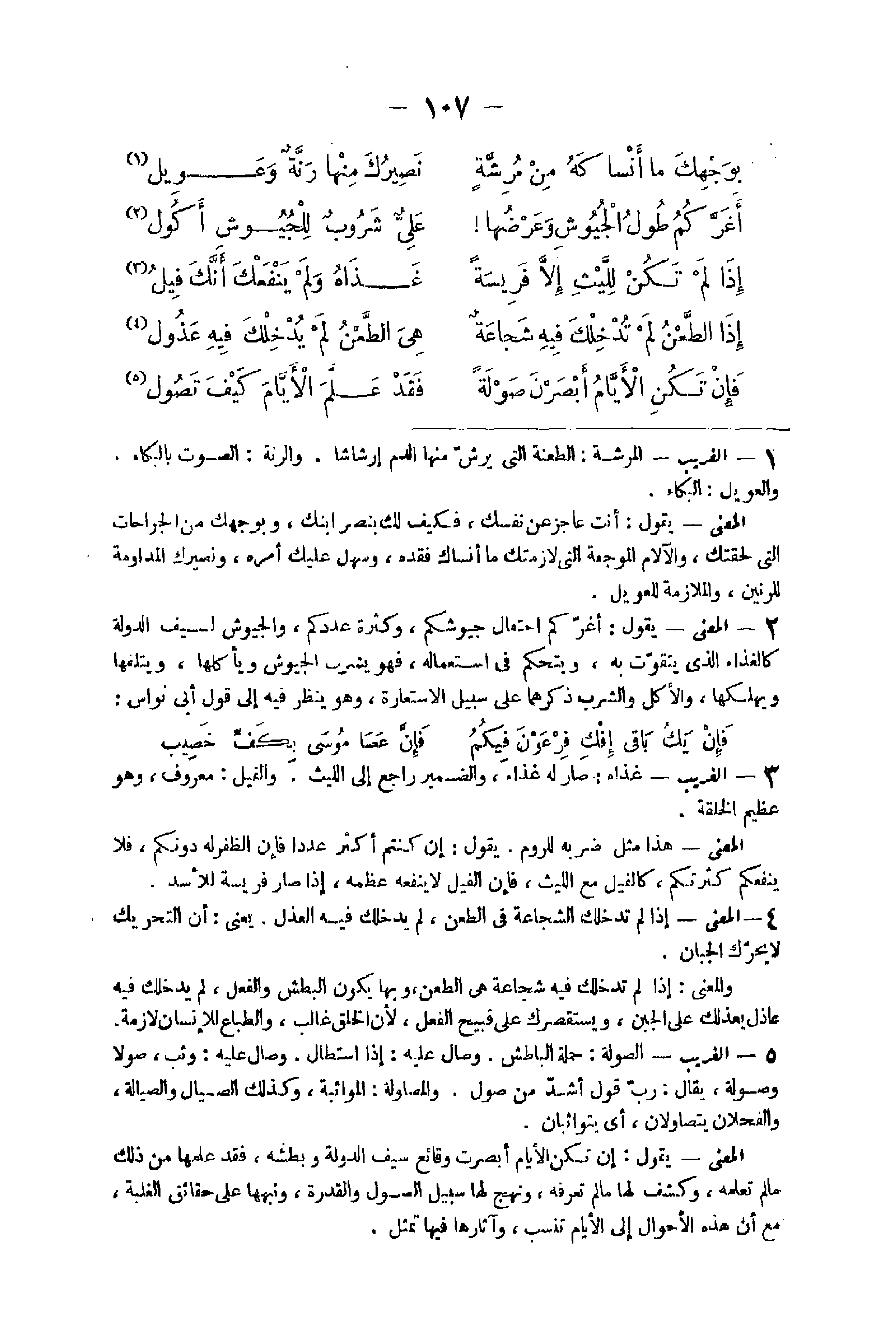 51 - الْمَعْنى إِذا لم تدخلك الشجَاعَة فِي الطعْن لم يدْخلك فِيهِ العذل يَعْنِي أَن التحريك لَا يُحَرك الجبان وَالْمعْنَى إِذا لم تدخلك فِيهِ شجاعة هِيَ الطعْن وَبهَا يكون الْبَطْش وَالْفِعْل لم يدْخلك فِيهِ عاذل يعذلك على الْجُبْن ويستقسرك على قَبِيح الْفِعْل لِأَن الْخلق غَالب والطباع للْإنْسَان لَازِمَة