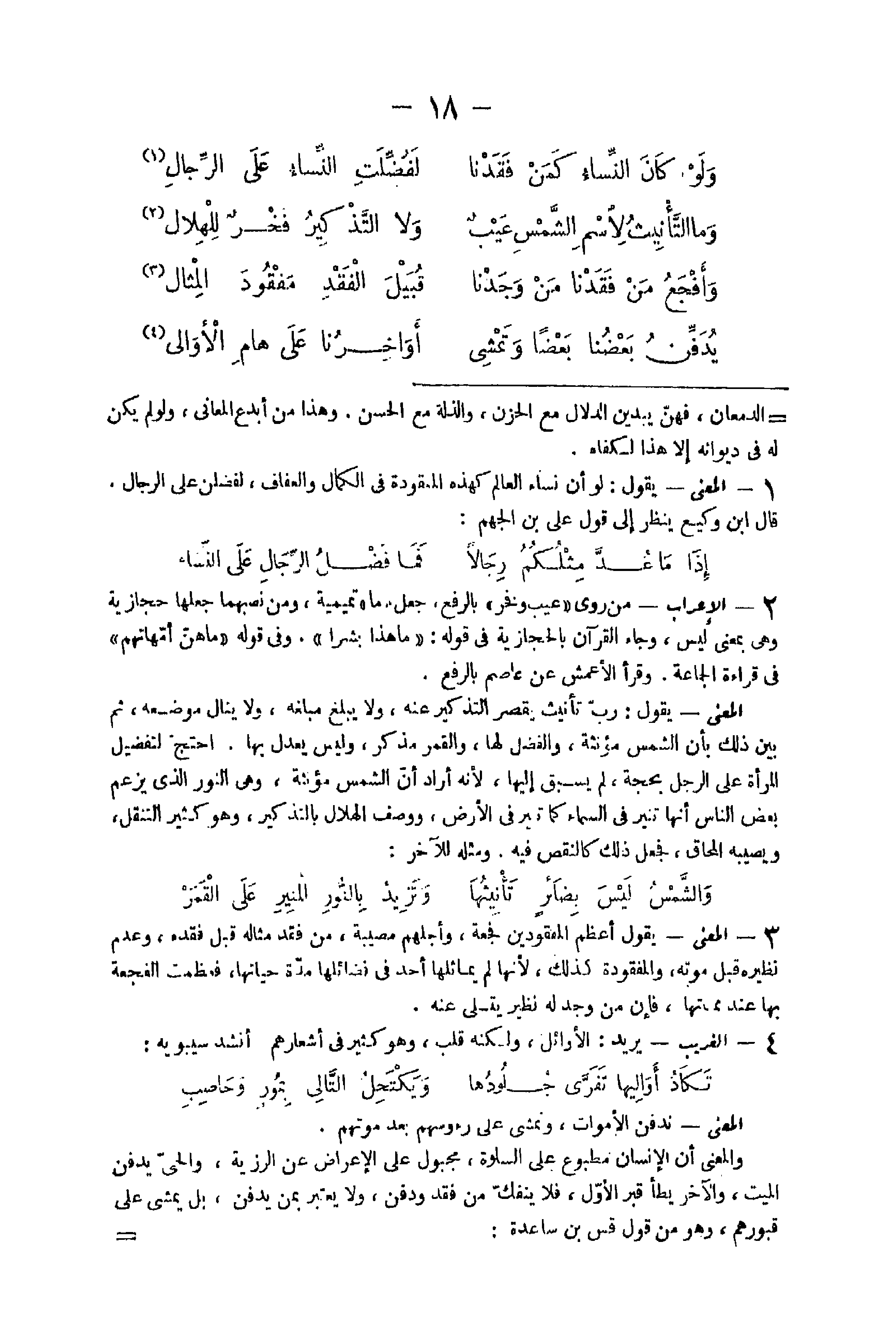 36 - الْمَعْنى يَقُول أعظم المفقودين فجعة وأجلهم مُصِيبَة من فقد مِثَاله قبل فَقده وَعدم نَظِيره قبل مَوته والمفقودة كَذَلِك لِأَنَّهَا لم يماثلها أحد فِي فضائلها مُدَّة حَيَاتهَا فعظمت الفجعة بهَا عِنْد مماتها فَإِن من وجد لَهُ نَظِير يتسلى عَنهُ
